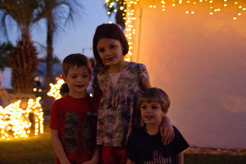 Since getting off the train yesterday morning, we ate at Denny’s, came to our lovely house, unpacked the van, went swiming in our pool, unpacked our suitcases, went grocery shopping, enjoyed the sunset over the lake in our backyard, went on a walk in the 70 degree weather and enjoyed the neighbors Christmas lights, ate dinner, slept peacefully on the wonderful beds, woke up and are now about to walk out the door to go to Magic Kingdom 🙂