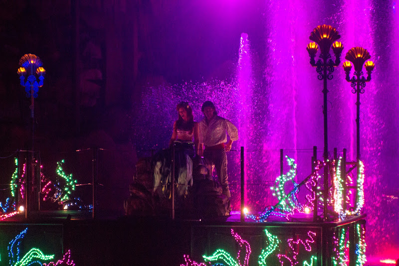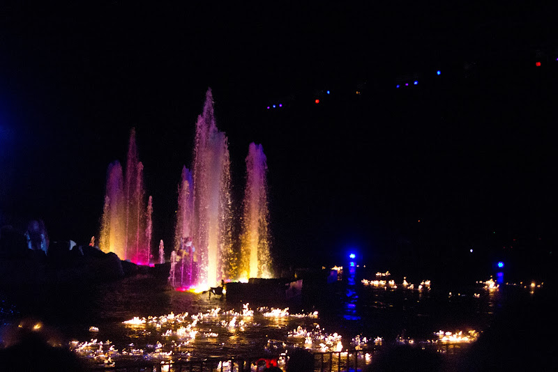 In the below photo, you’re looking at a giagantic fan shaped fountain that Disney used as a screen to project clips of classic Disney movies throughout the night show, Fantasmic.