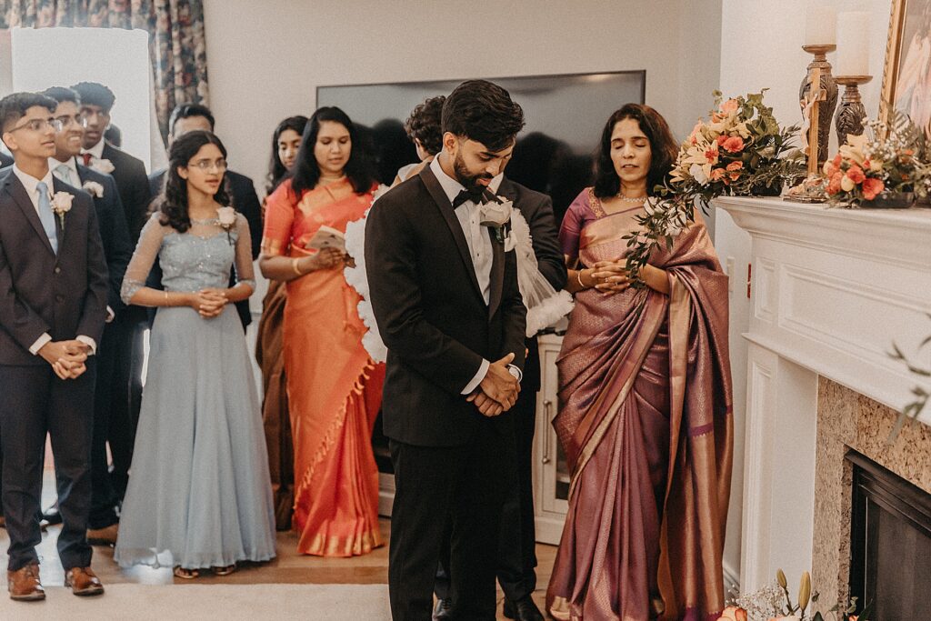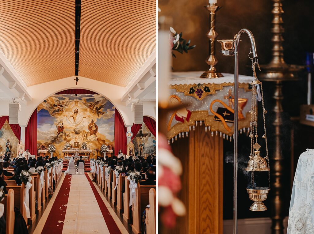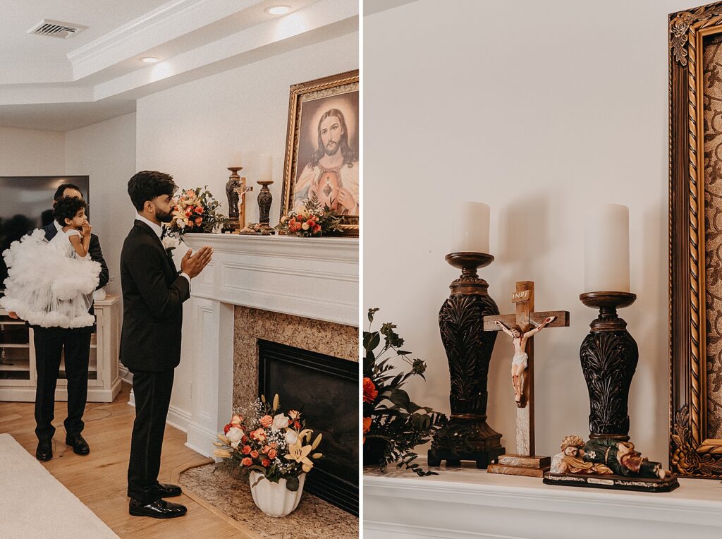 The day started at both Ann & Ryan’s parents’ homes, where they each got ready before participating in the Stuthi Ceremony with their extended families. The Stuthi is a period of time where they all pray together in front of Holy Images, and then the elders in the family, one by one extend a blessing to the bride + groom.