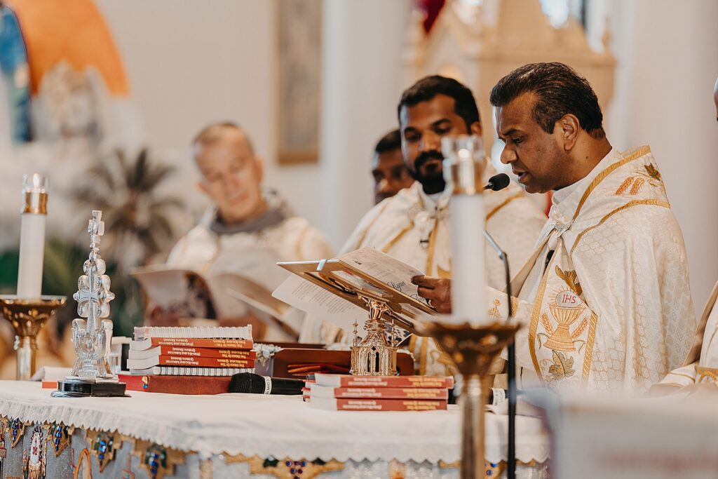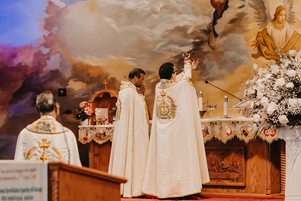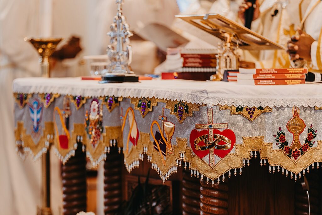 During the Sacrament of Matrimony in the Syro-Malabar Rite, there are a few key unique elements: specifically, the Manthrakodi and the Thaali. The Manthrakodi is a saree that the groom and his family have bought for his bride, and the name comes from “manthra” which means blessed and “kodi” which means new clothes.