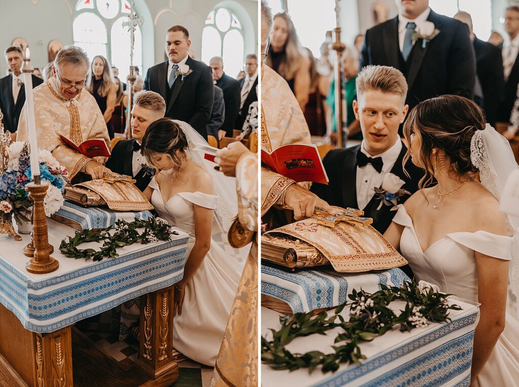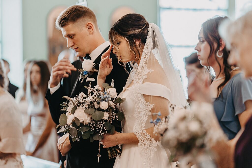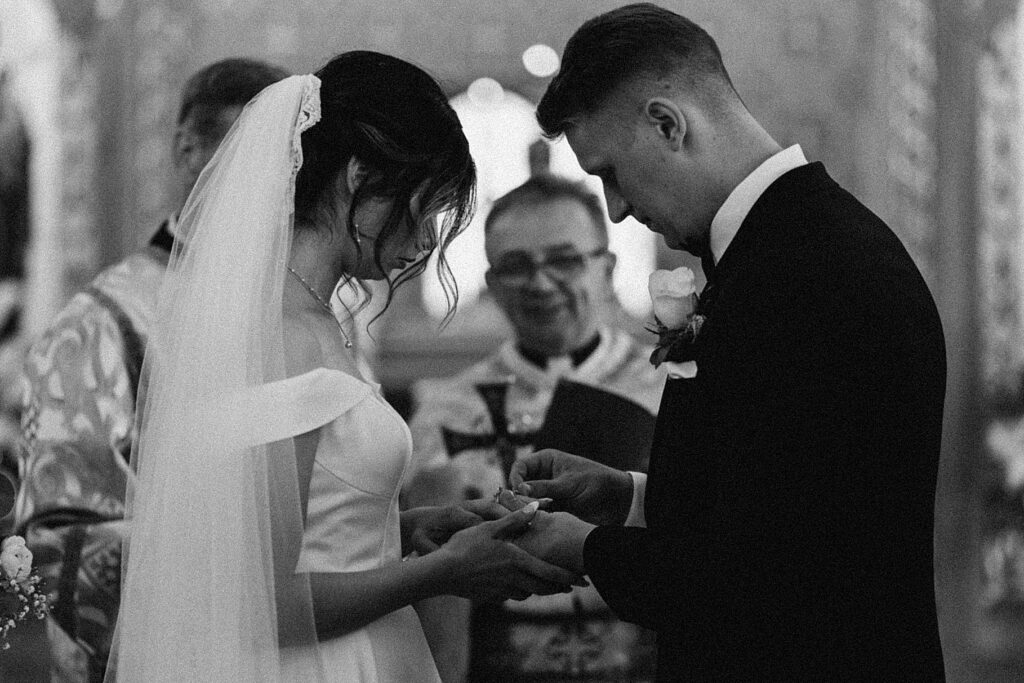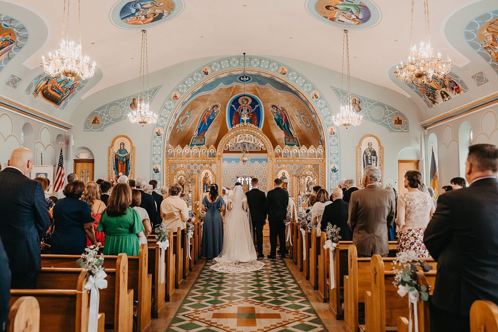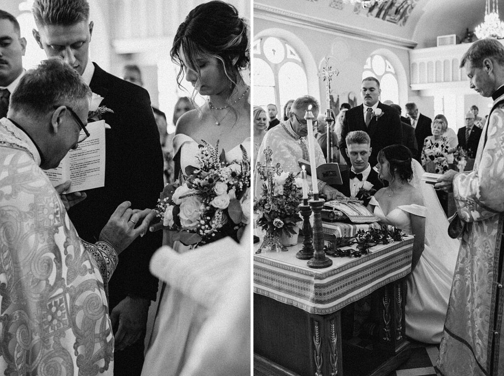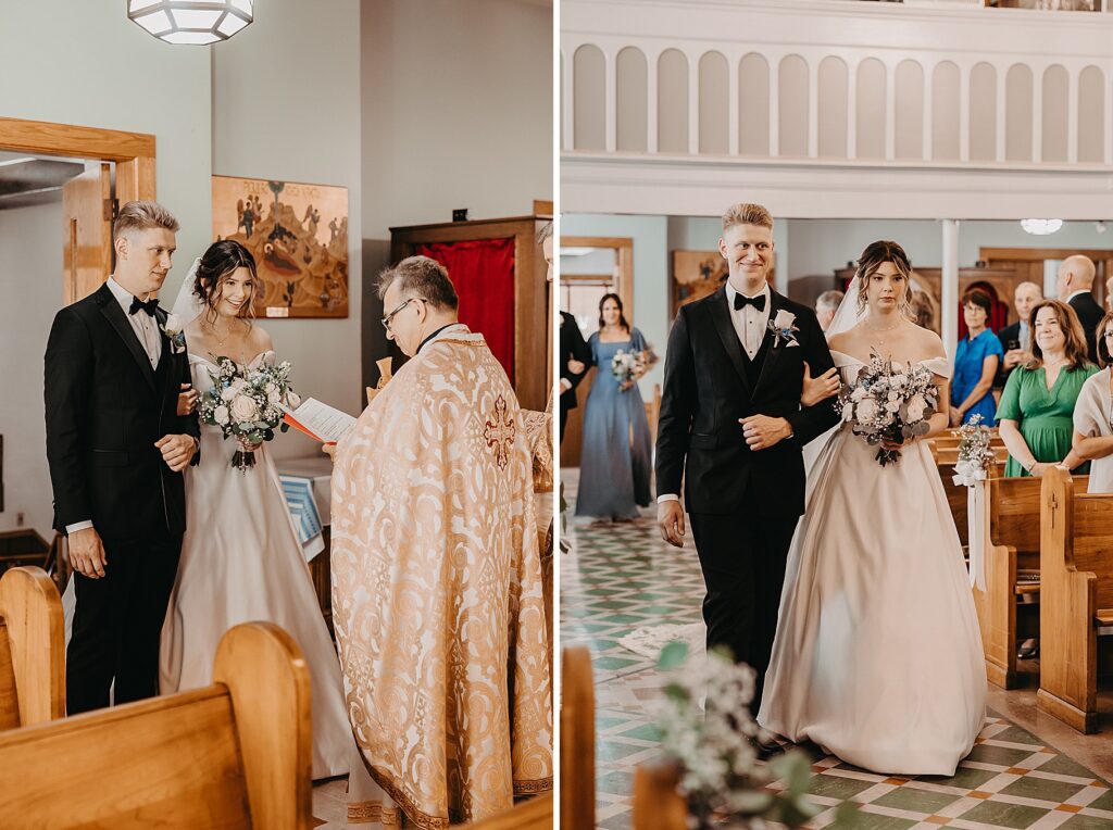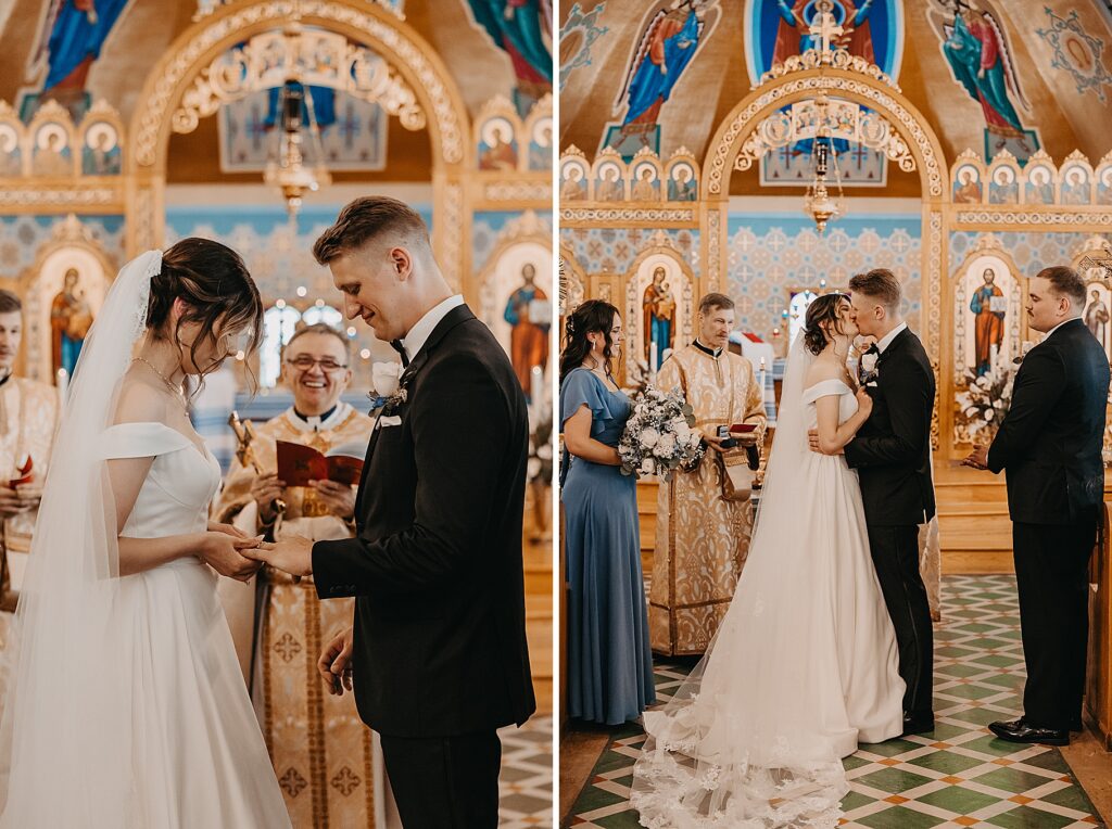 Their ceremony was held at St. Nicholas Ukrainian Catholic Church, Grace’s home parish, where her father serves as a deacon. The church itself was breathtaking, filled with vibrant colors, icons, and the beauty of tradition. One of my favorite moments in a Byzantine wedding is the Crowning, when the couple is crowned with wreaths of myrtle. These crowns symbolize the glory and honor with which God crowns them as king and queen of their new domestic church—the little kingdom they will build together in their home.