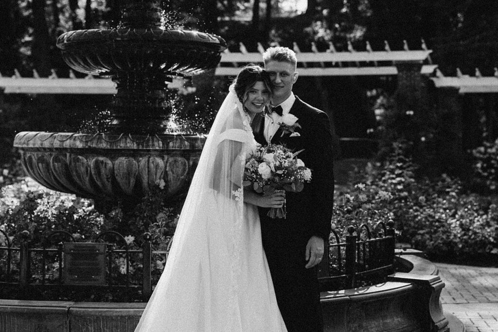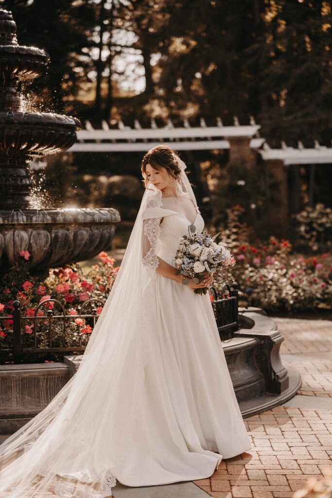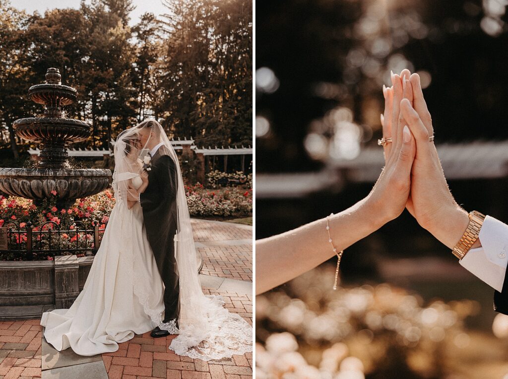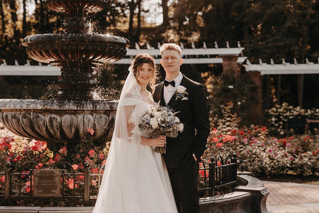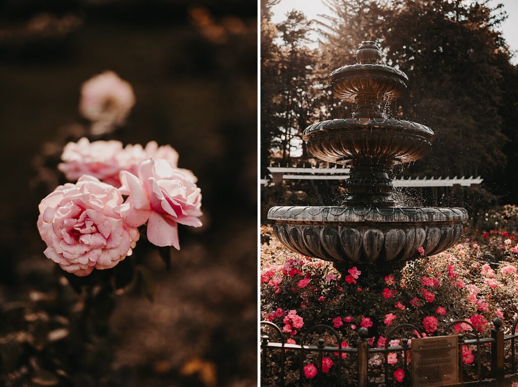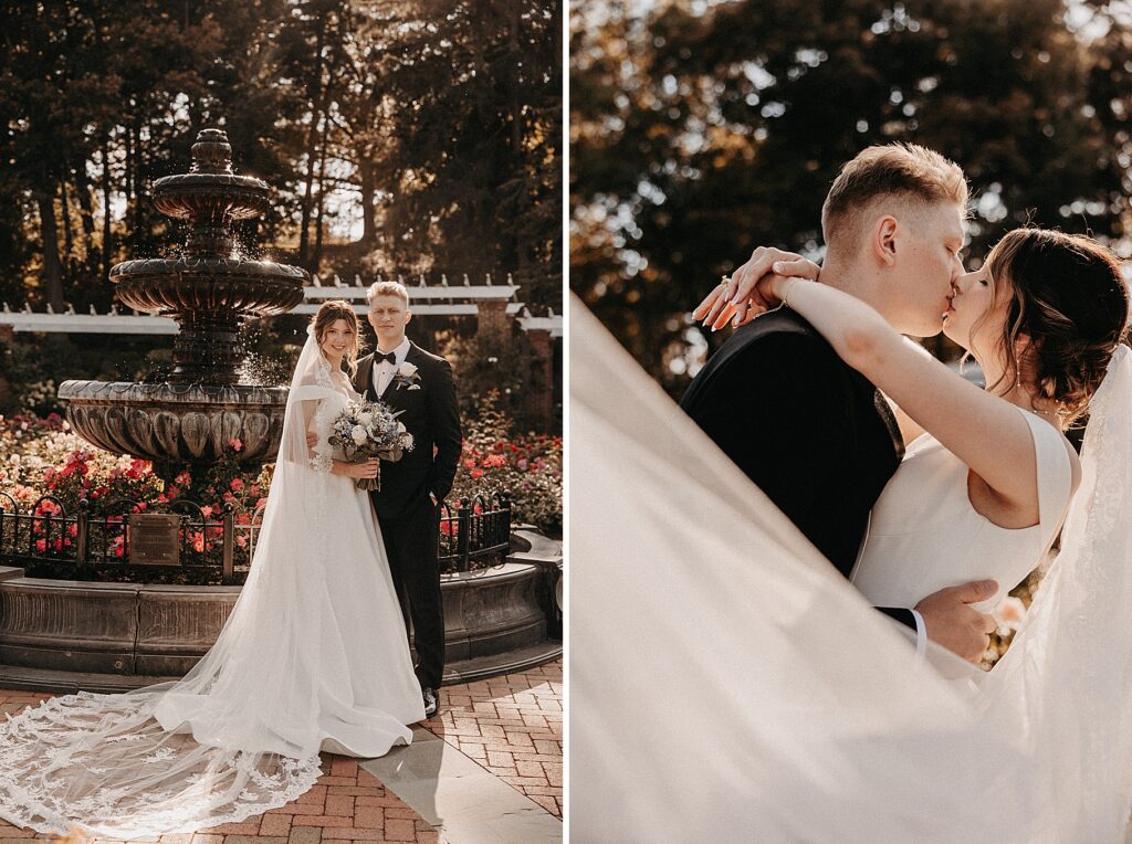 After the liturgy, the newlyweds were greeted outside the church with cheers and bubbles from their family and friends before we headed back inside for their family photos. On our way to the reception, we stopped at a rose garden for a few more portraits. The evening light was hitting the roses and fountain just perfectly and it felt like a dream!