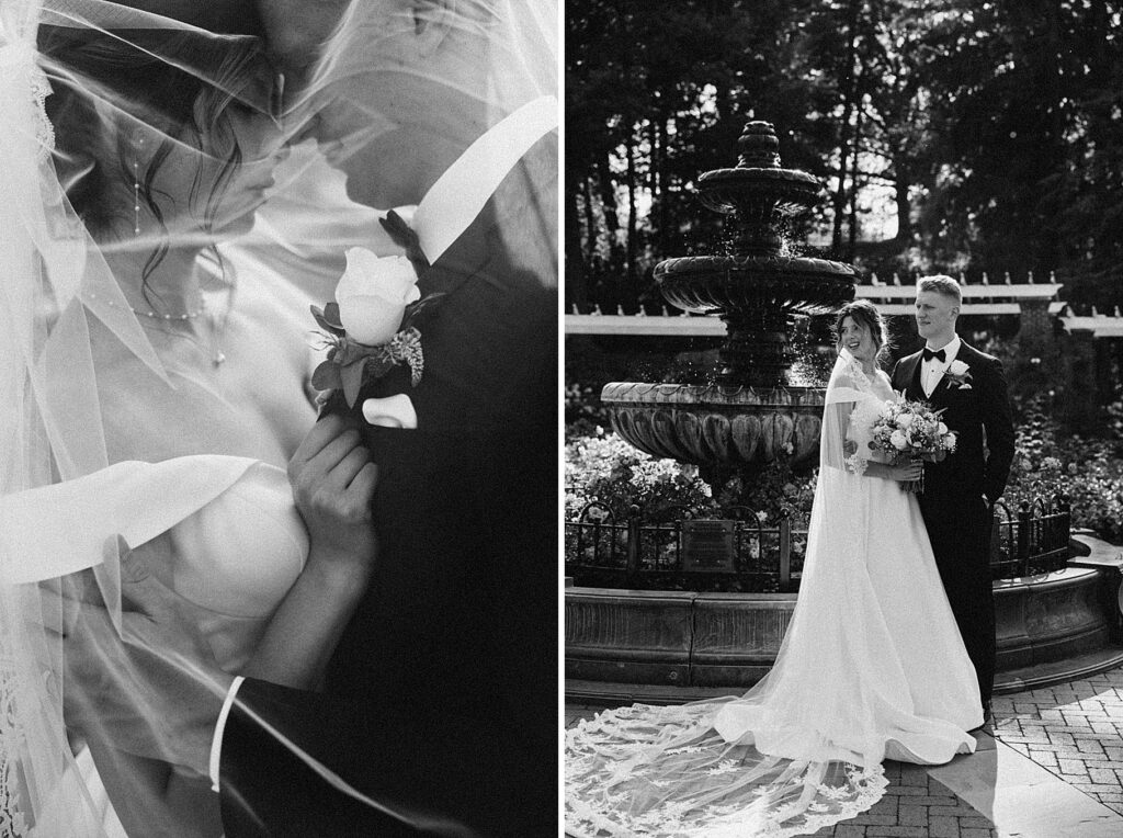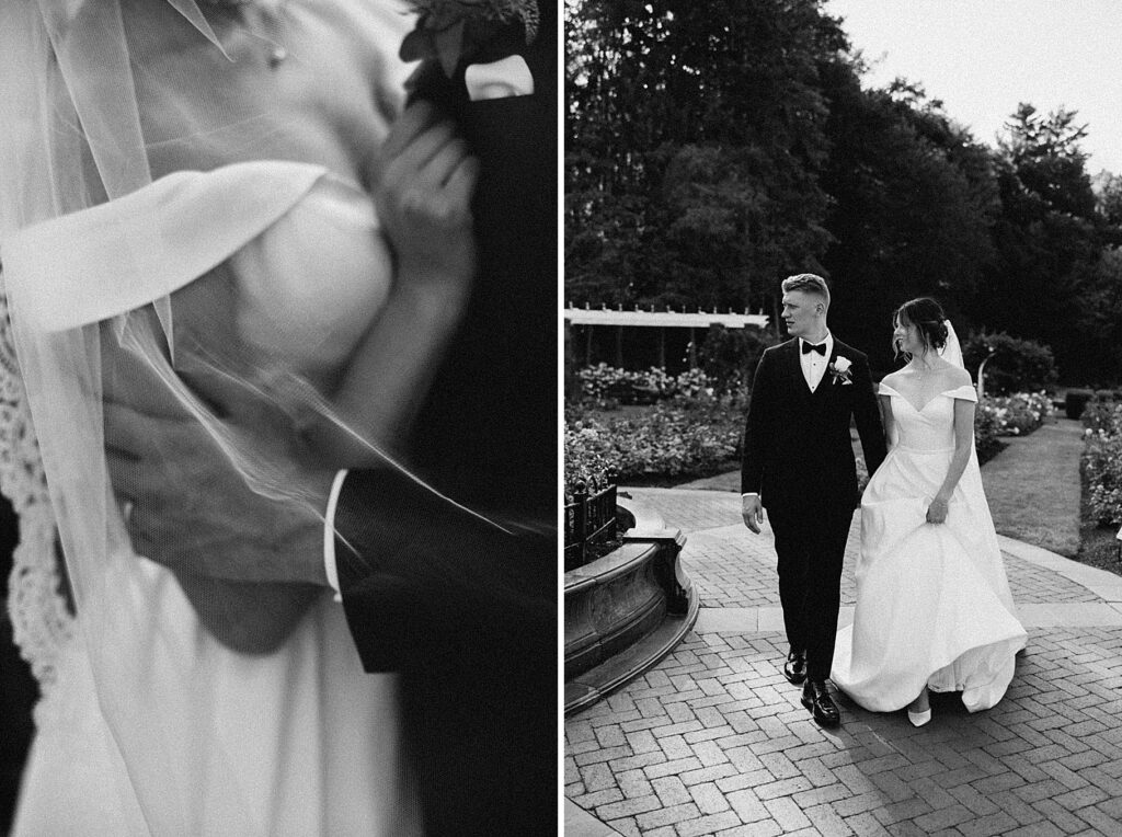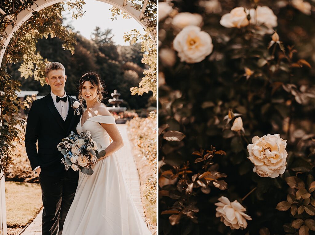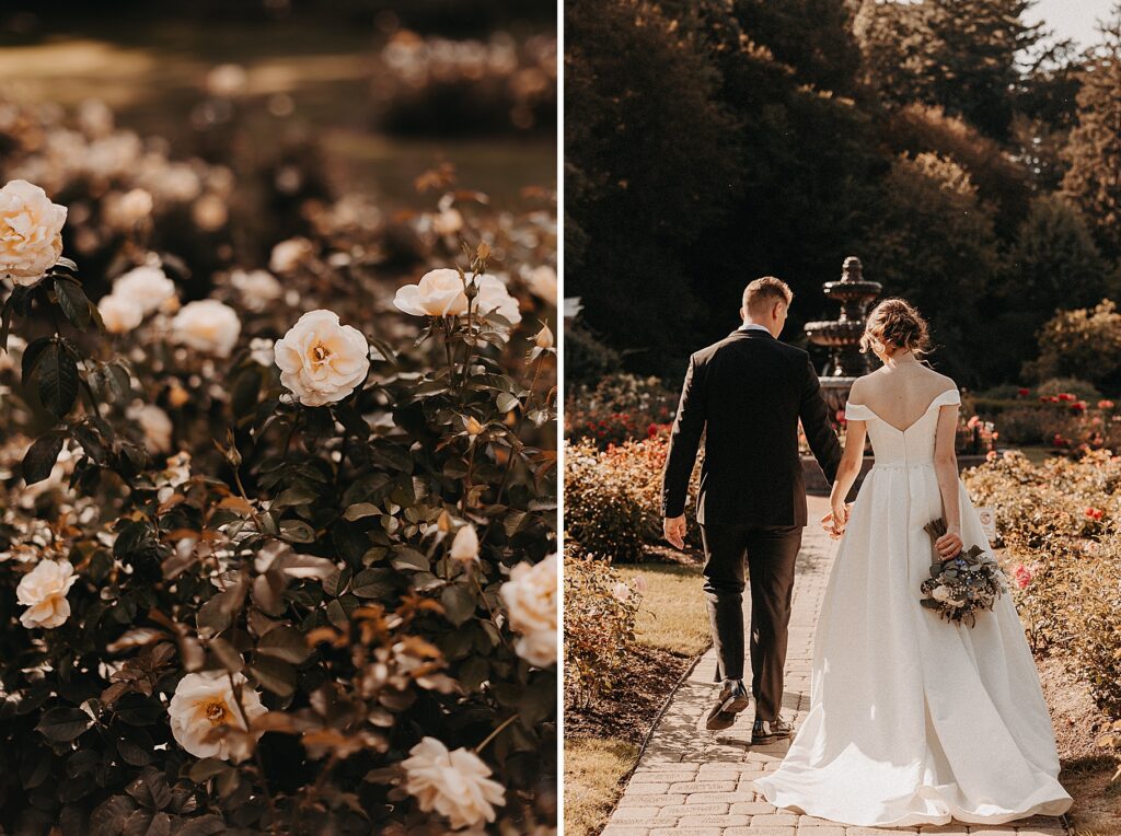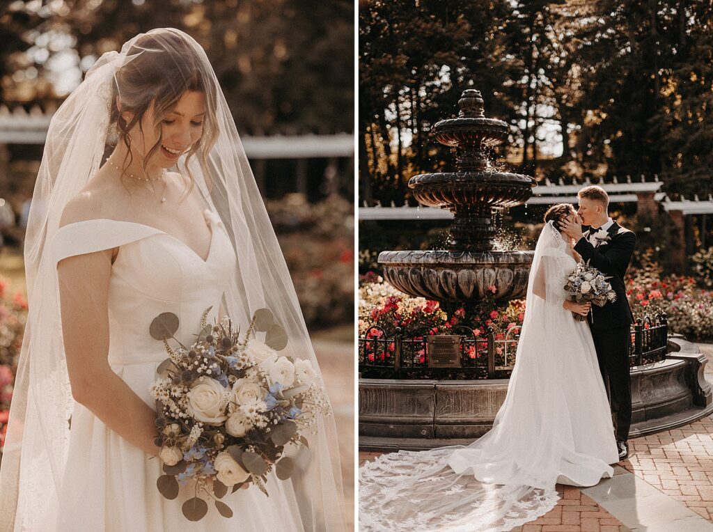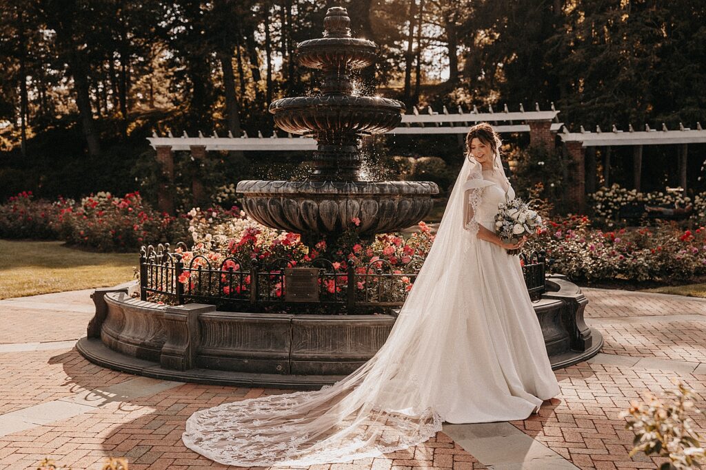 After the liturgy, the newlyweds were greeted outside the church with cheers and bubbles from their family and friends before we headed back inside for their family photos. On our way to the reception, we stopped at a rose garden for a few more portraits. The evening light was hitting the roses and fountain just perfectly and it felt like a dream!