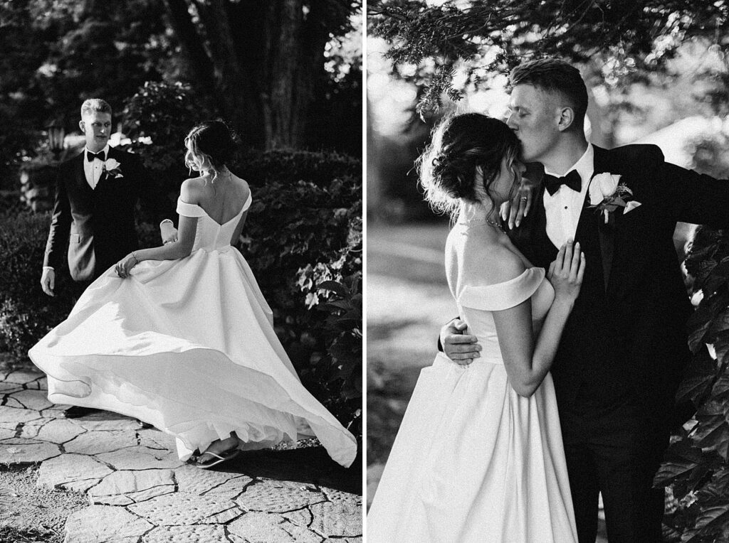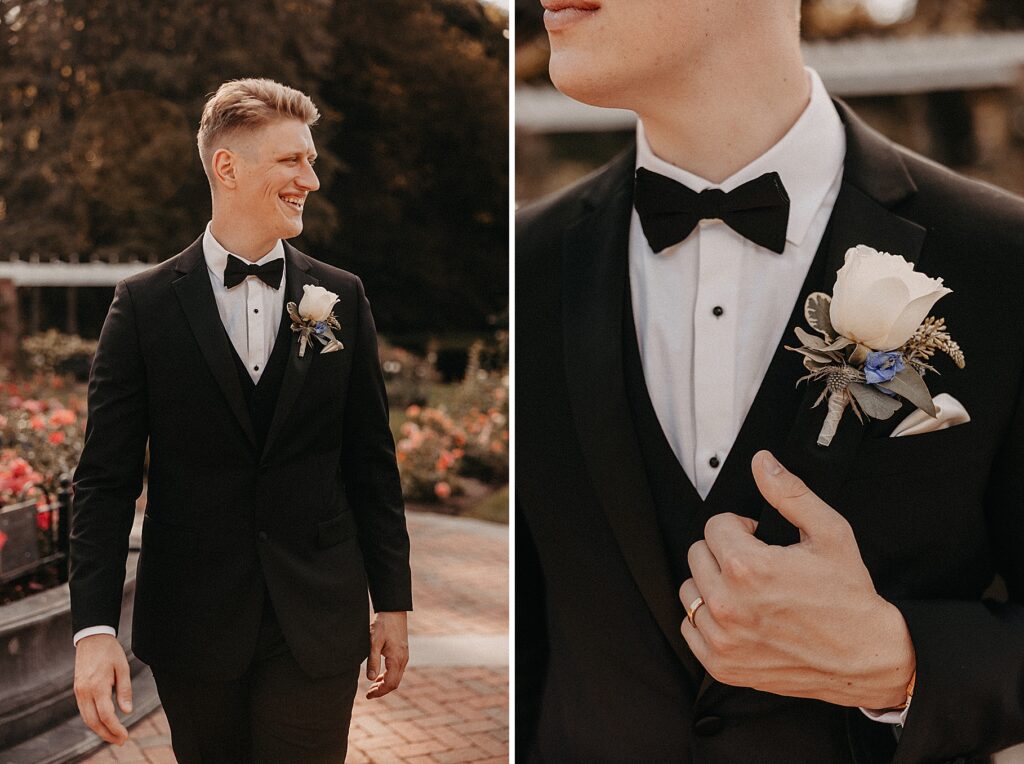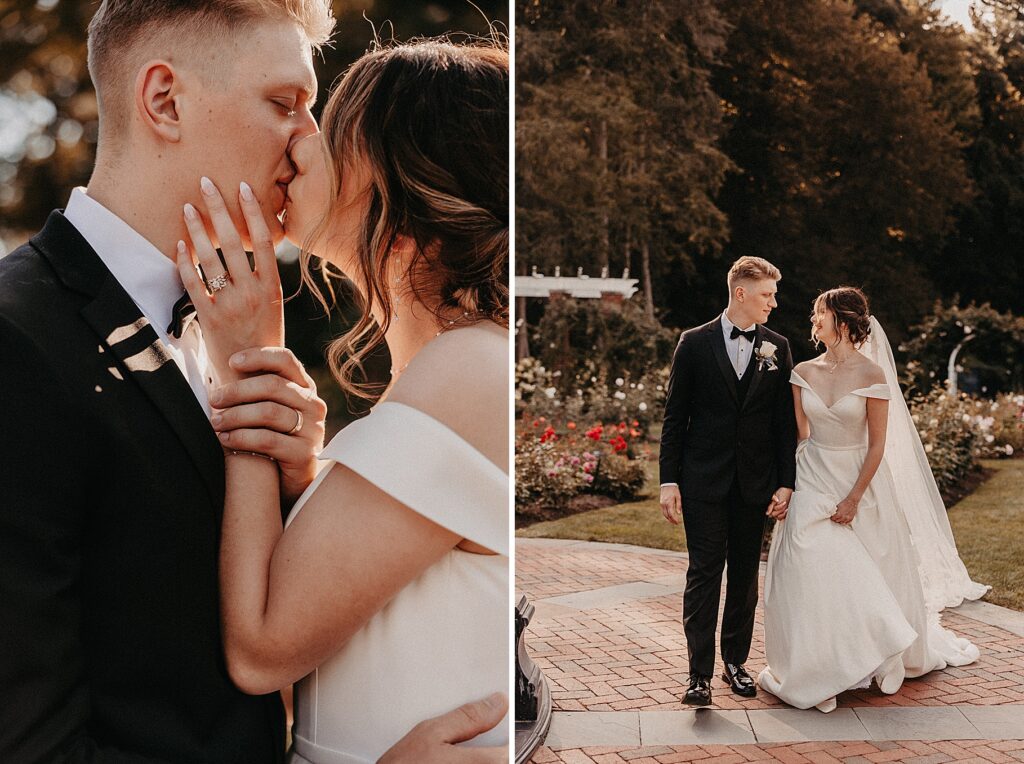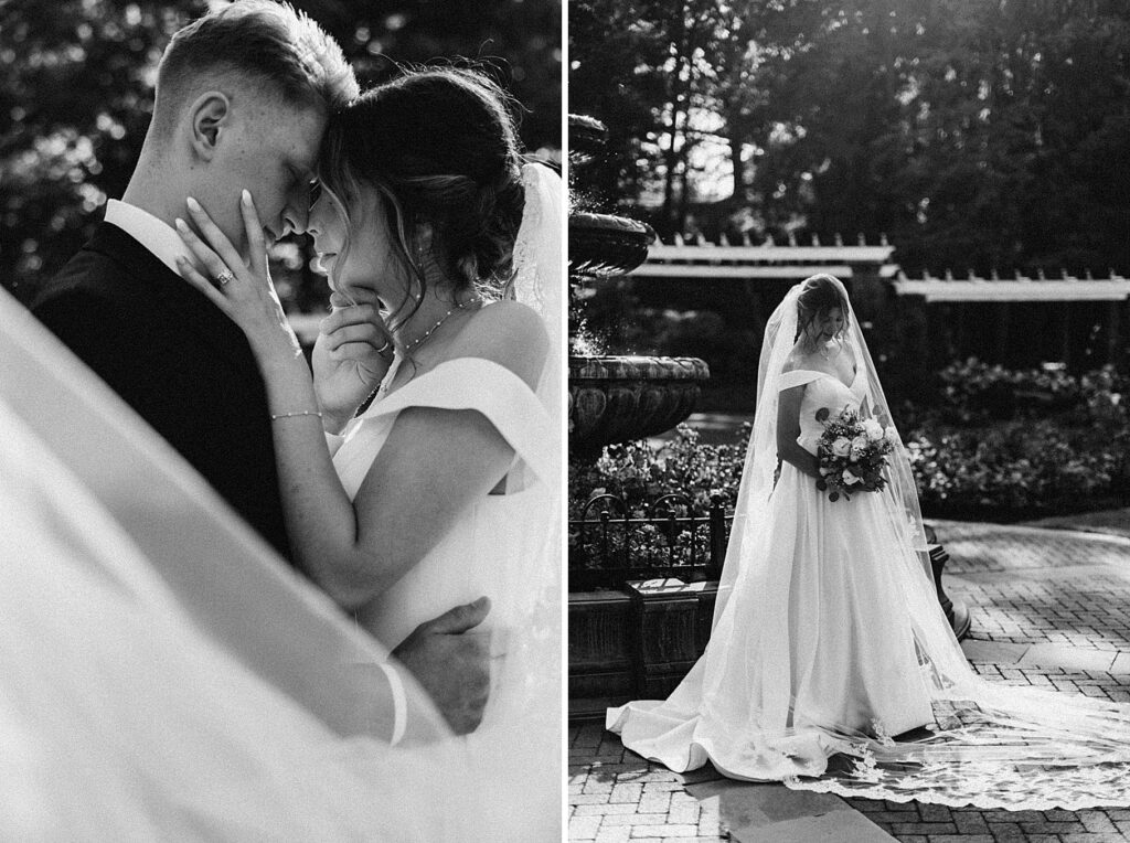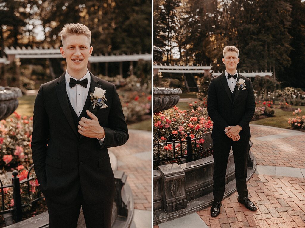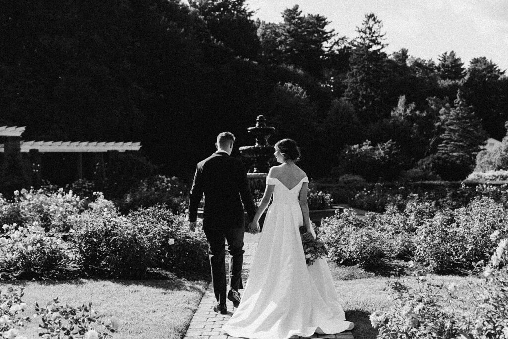 After the liturgy, the newlyweds were greeted outside the church with cheers and bubbles from their family and friends before we headed back inside for their family photos. On our way to the reception, we stopped at a rose garden for a few more portraits. The evening light was hitting the roses and fountain just perfectly and it felt like a dream!