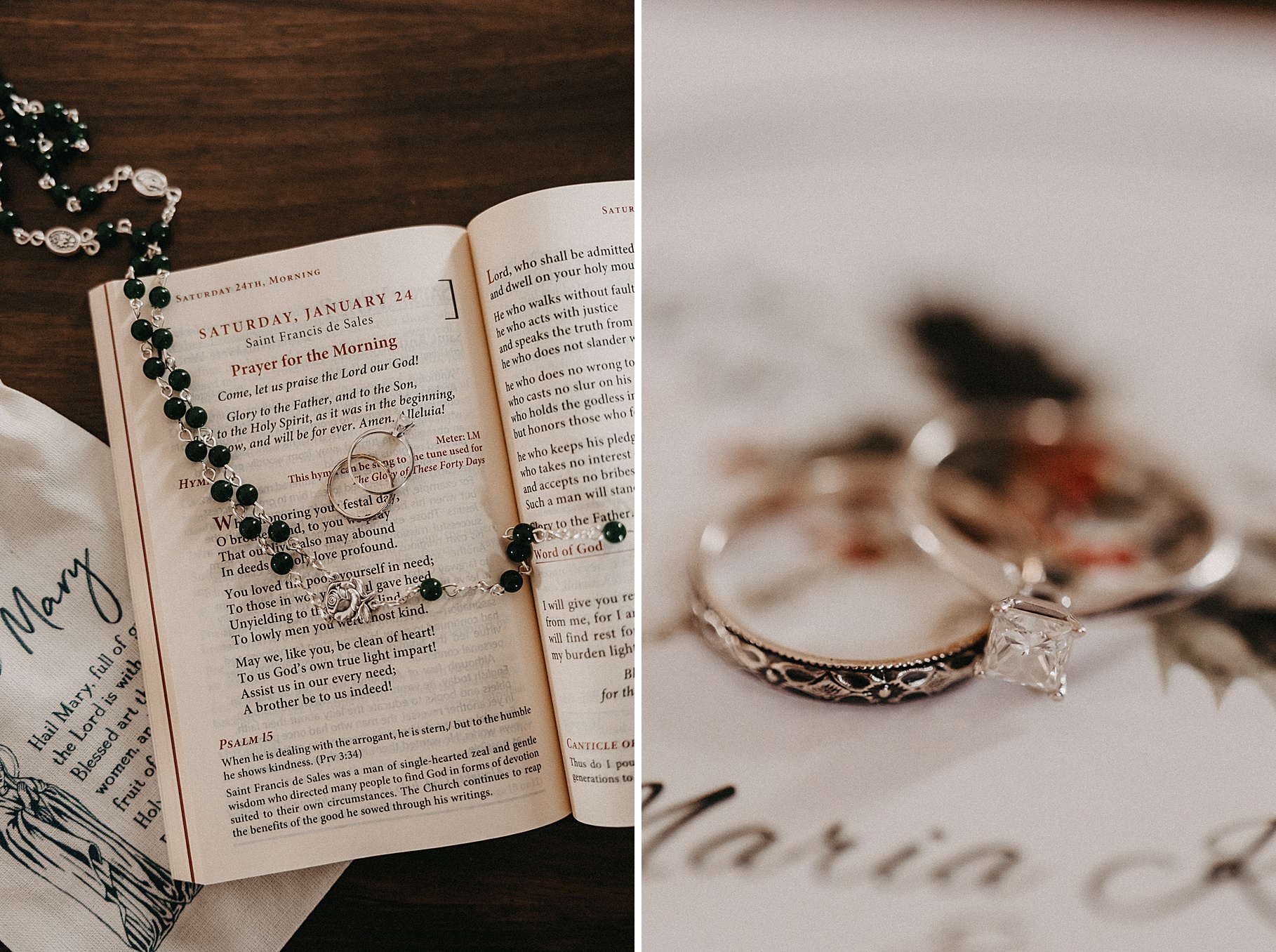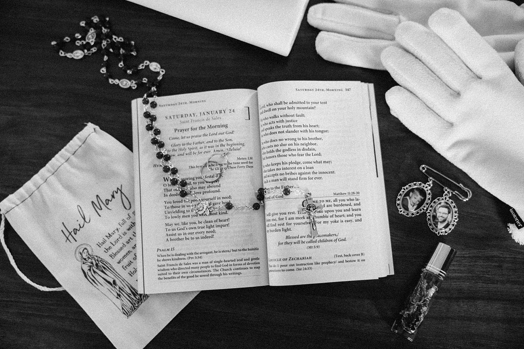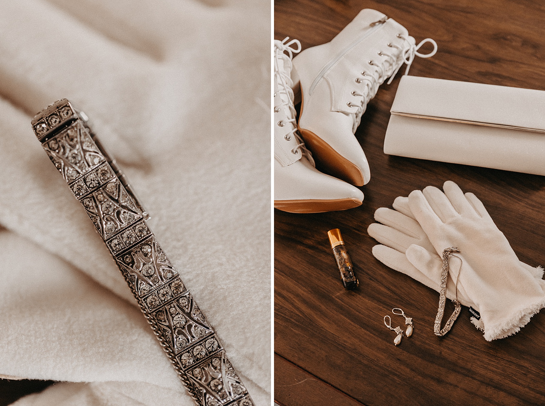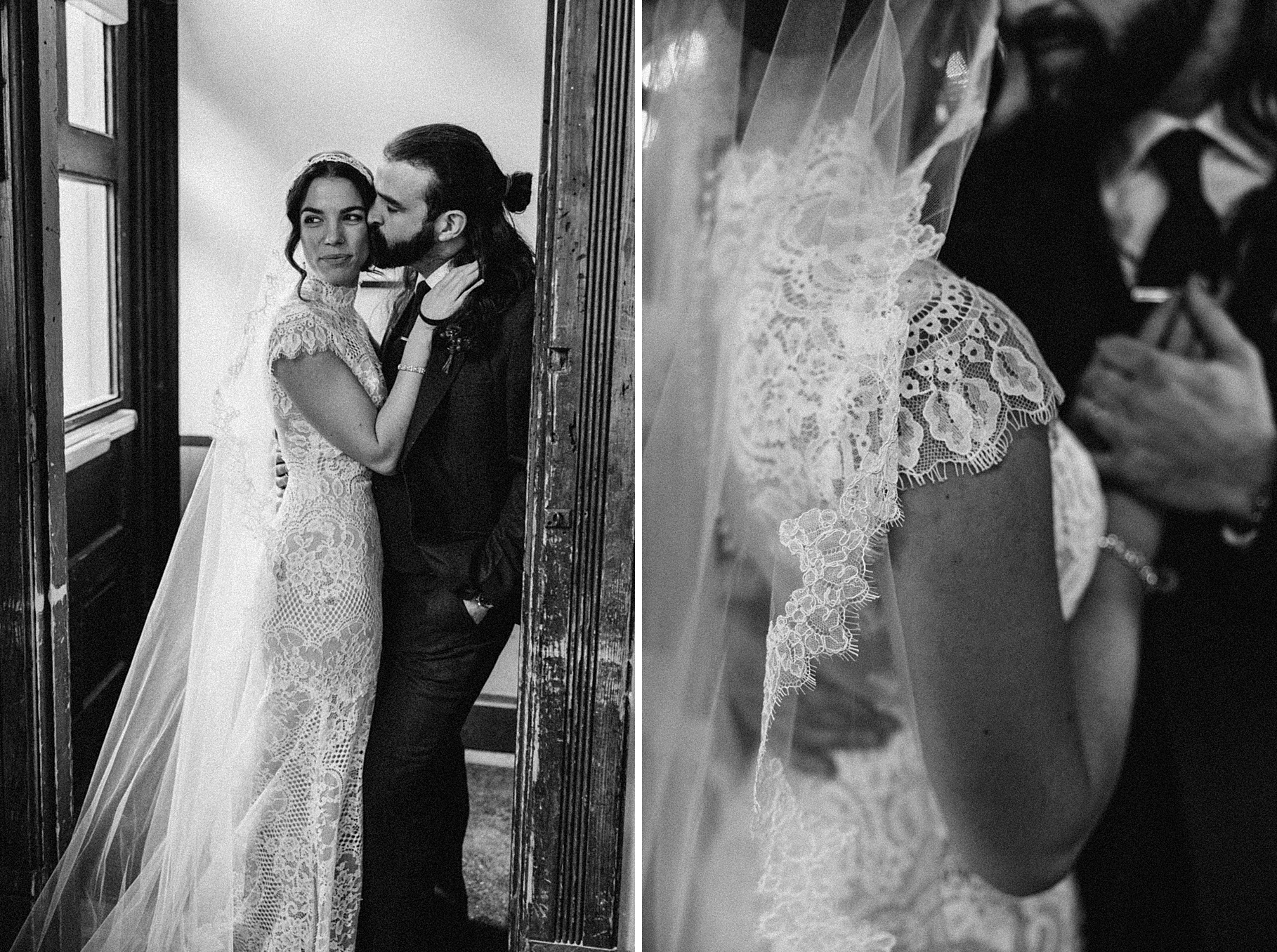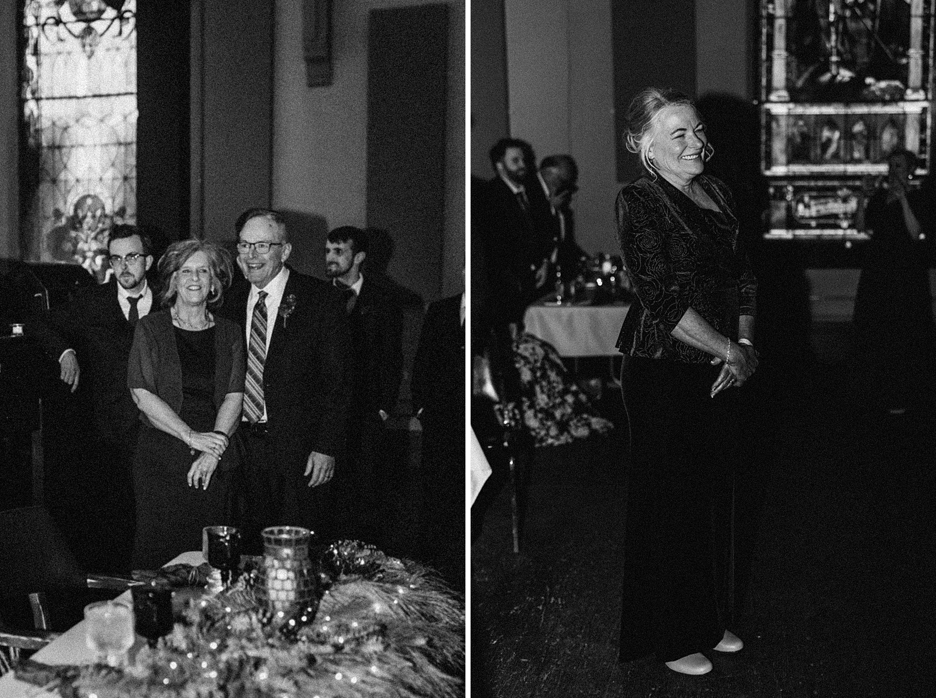 We started the day at a hotel in Kentucky, just across the river from Cincinnati, where both Maria & Benj were getting ready. From there, we headed to their church, the gorgeous St. Monica–St. George Catholic Church, which features stunning stained glass and intricate details everywhere you look. Maria and Benj chose to do a first look (Maria said it was this blogpost that helped them decide!), and the frigid temperatures led us to do it inside the church—which I honestly loved. We were able to take a few quiet moments after their first look for portraits inside the church before too many people arrived, and those are some of my favorites from the entire day.