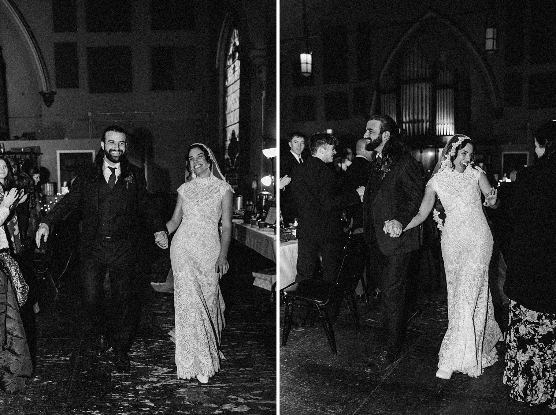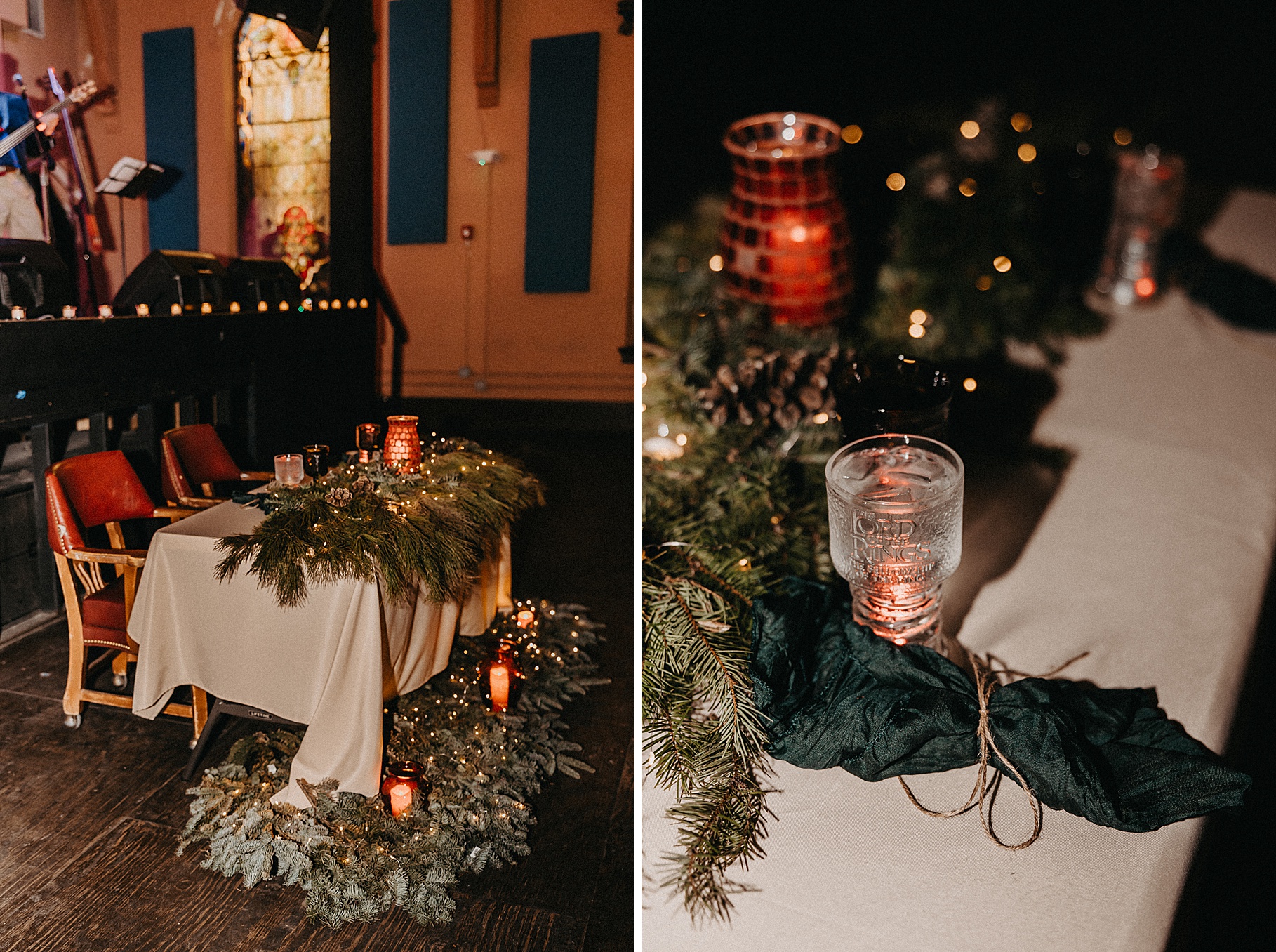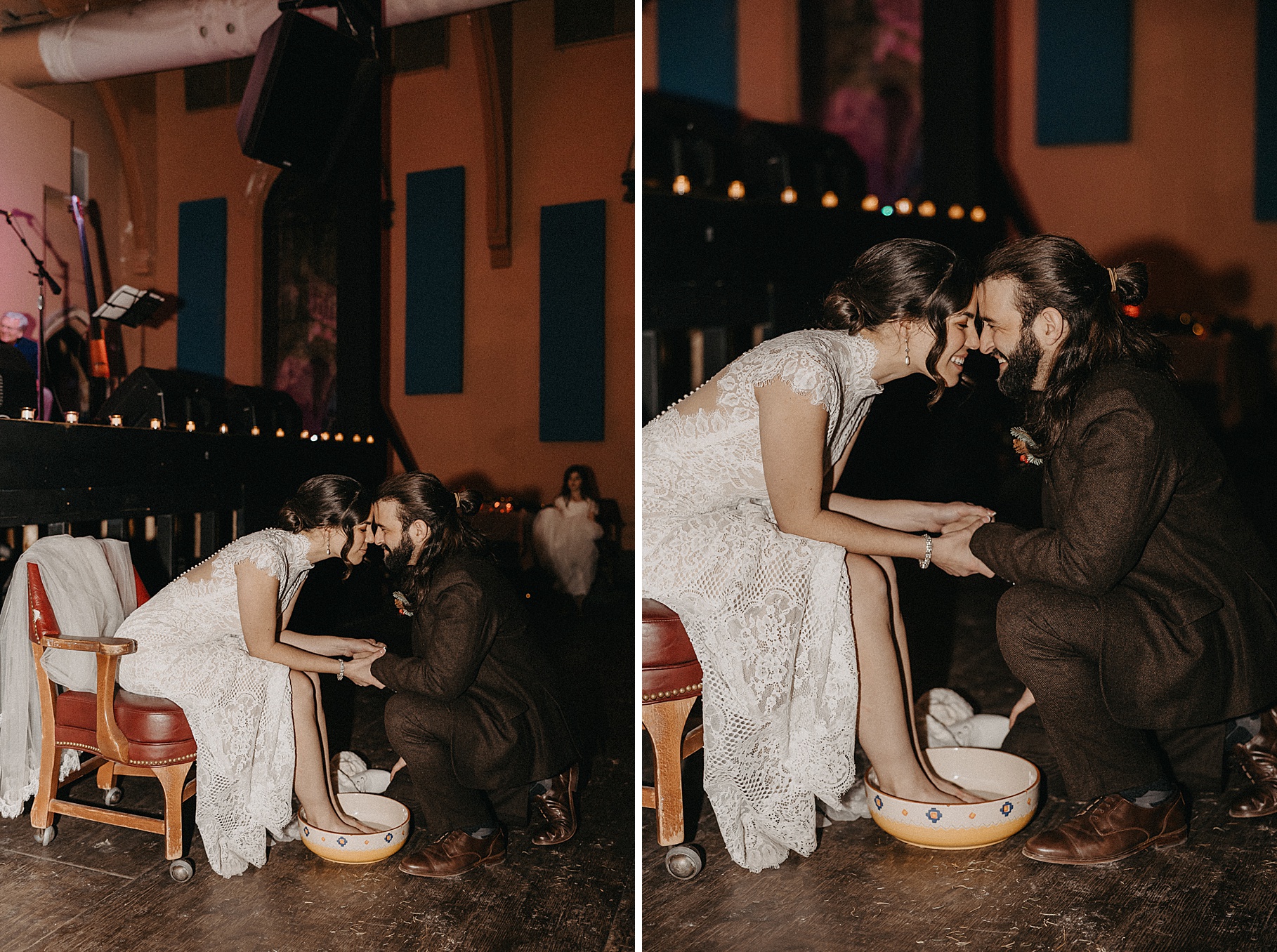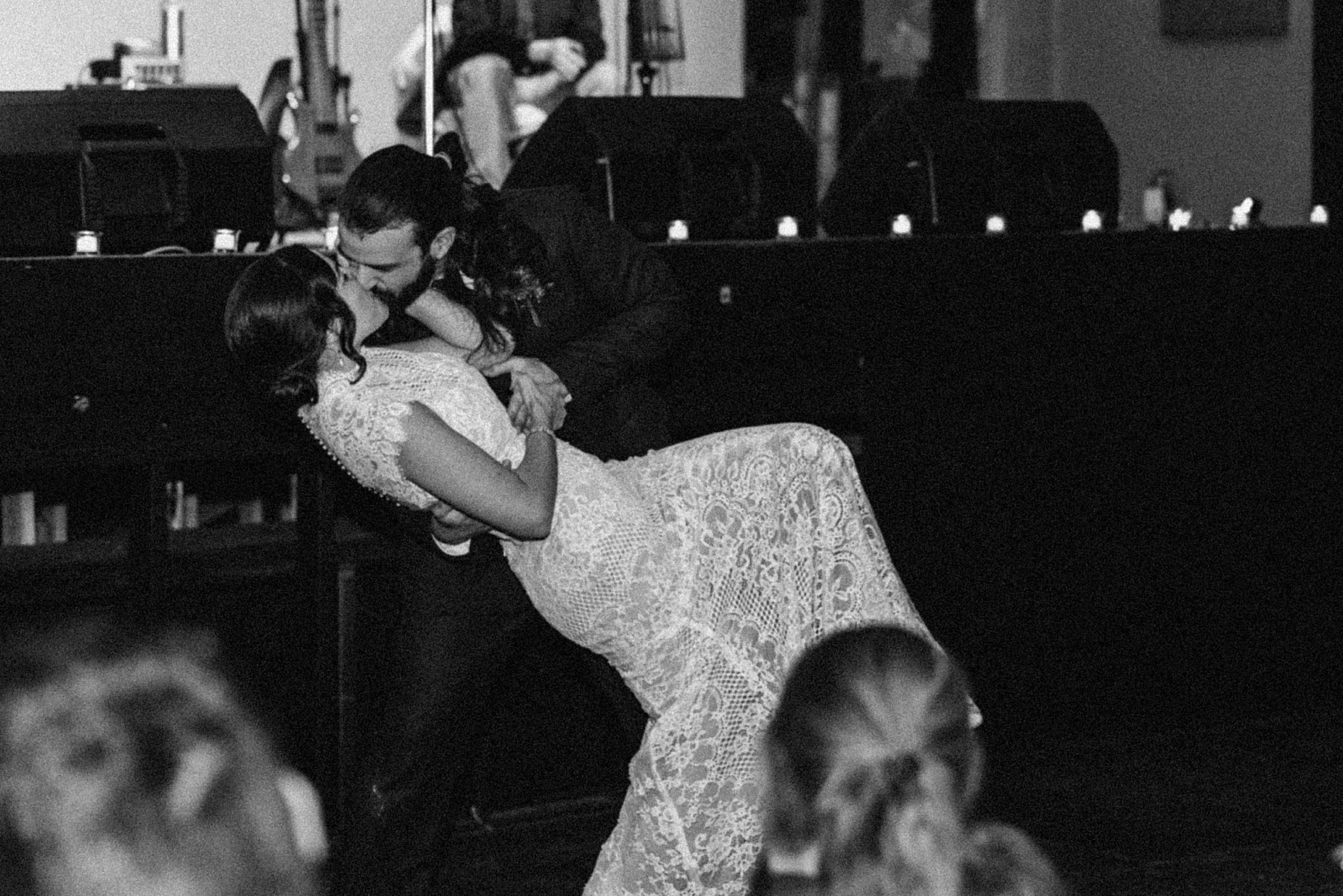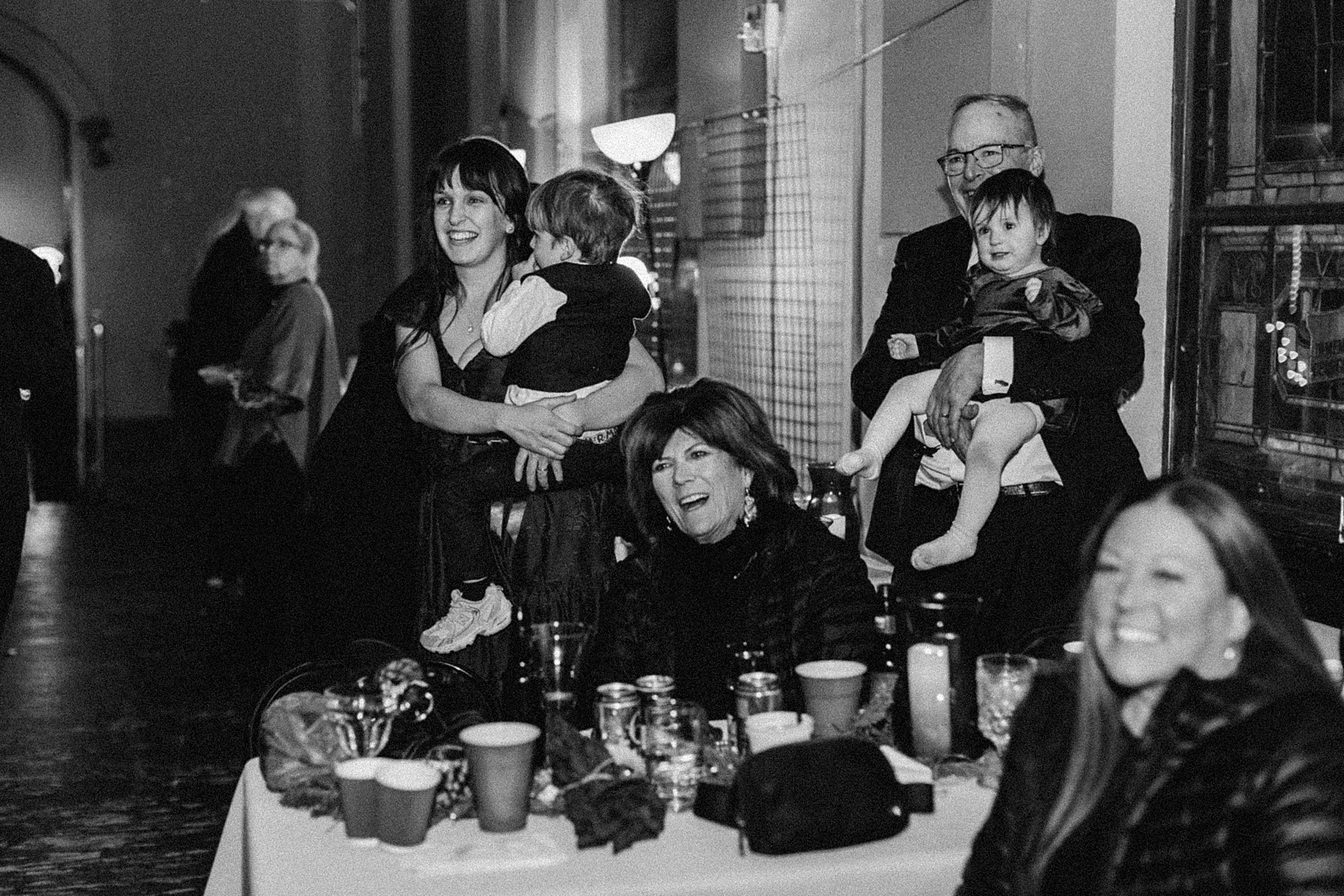 Once we finished portraits, we made our way to their reception at The Southgate Revival House. This venue is typically a live music space, which meant we had an incredible stage and lighting setup for their band, The Burning Caravan, who absolutely crushed it all evening. A few other highlights from the reception: Benj and his mom opted not to dance and instead sang a song for Maria and her dad’s dance (how special is that?). Another favorite moment was when Maria’s three sisters came out dressed as the nuns from The Sound of Music and performed a personalized version of “Maria,” describing their sister instead of giving traditional toasts. Maria and Benj also have a lot of nieces and nephews, which meant so many kiddos having the time of their lives—running around, dancing, eating pie (they had a pie bar instead of cake!), and drinking hot cocoa.
