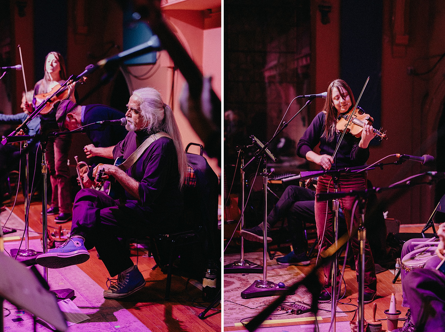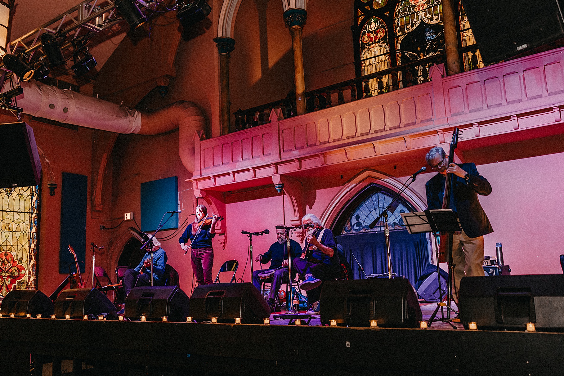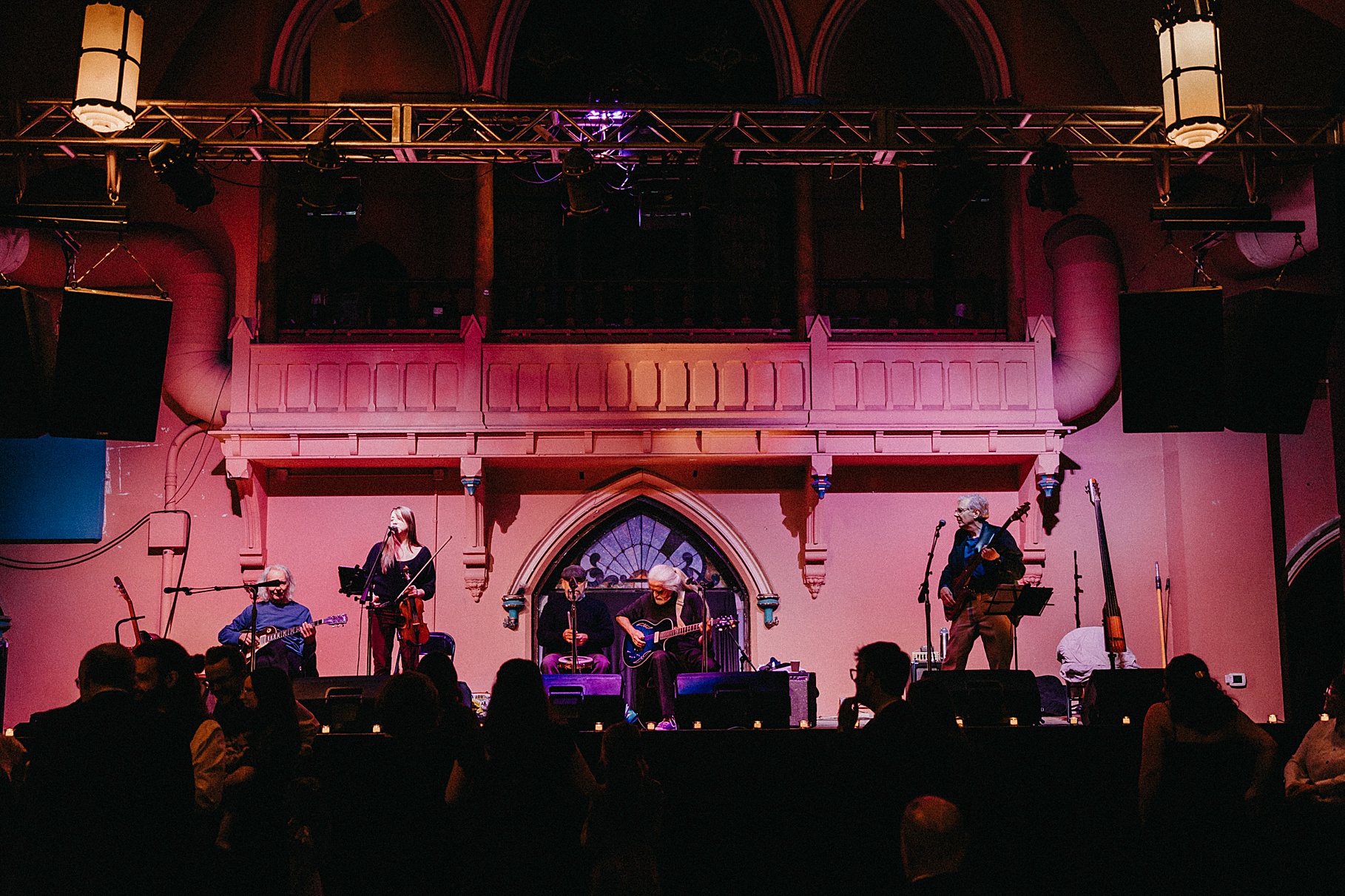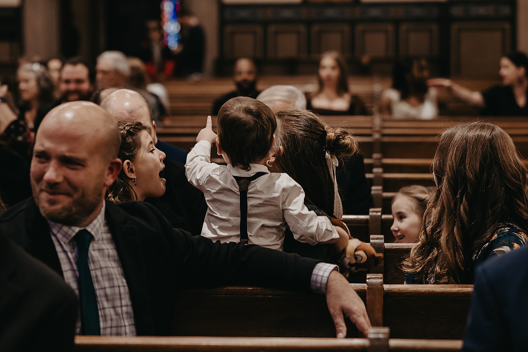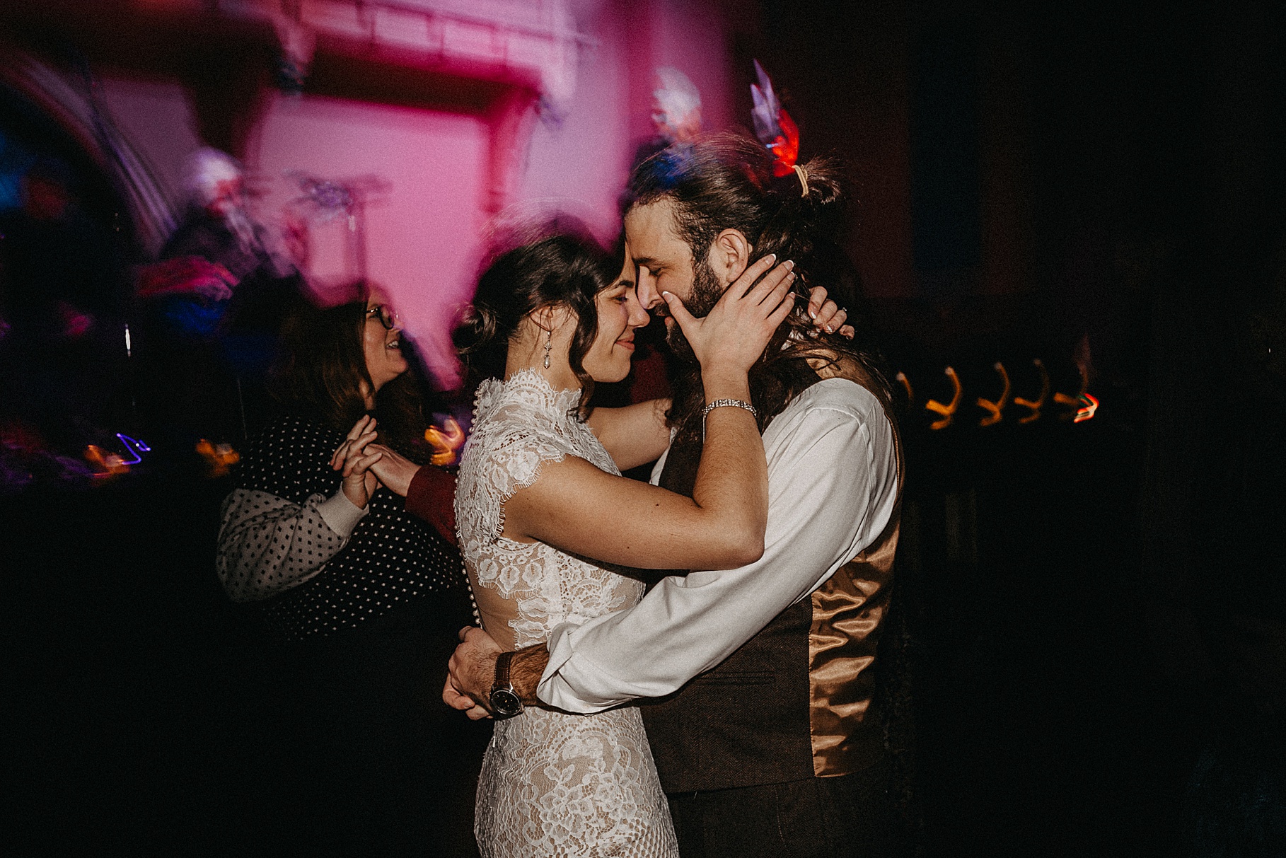 Once we finished portraits, we made our way to their reception at The Southgate Revival House. This venue is typically a live music space, which meant we had an incredible stage and lighting setup for their band, The Burning Caravan, who absolutely crushed it all evening. A few other highlights from the reception: Benj and his mom opted not to dance and instead sang a song for Maria and her dad’s dance (how special is that?). Another favorite moment was when Maria’s three sisters came out dressed as the nuns from The Sound of Music and performed a personalized version of “Maria,” describing their sister instead of giving traditional toasts. Maria and Benj also have a lot of nieces and nephews, which meant so many kiddos having the time of their lives—running around, dancing, eating pie (they had a pie bar instead of cake!), and drinking hot cocoa.