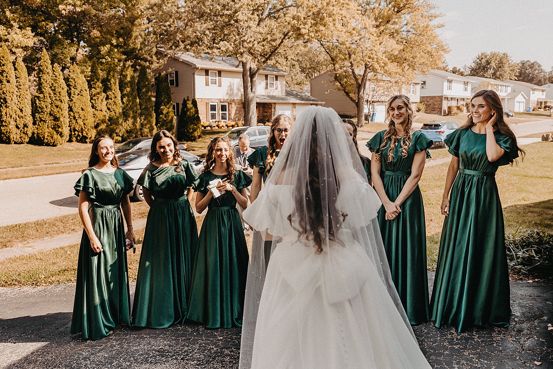 Maria & Connor’s October wedding day was bathed in golden sunshine—one of those crisp, perfect fall days that remind me why I love fall so much! This wedding was significant for me because I had the honor of photographing Maria’s sister, Christina’s, wedding six years ago at the very same church in Dayton, Ohio (back when my editing was a lot more yellow haha!) Holy Family Catholic Church is the Traditional Latin Mass parish in Dayton and it is truly a gem—filled with stunning stained glass windows, dramatic architecture, and rich colors & paintings on every wall!