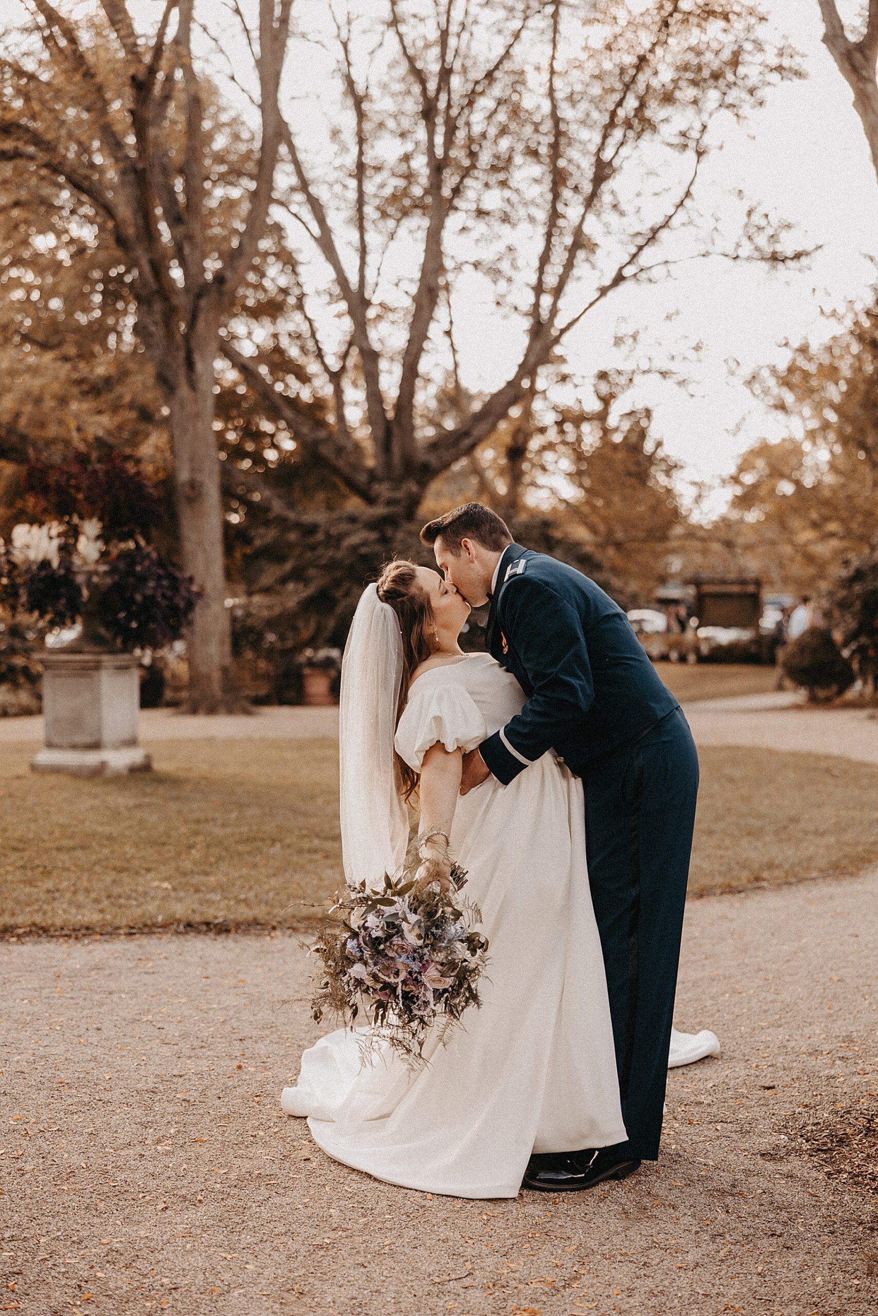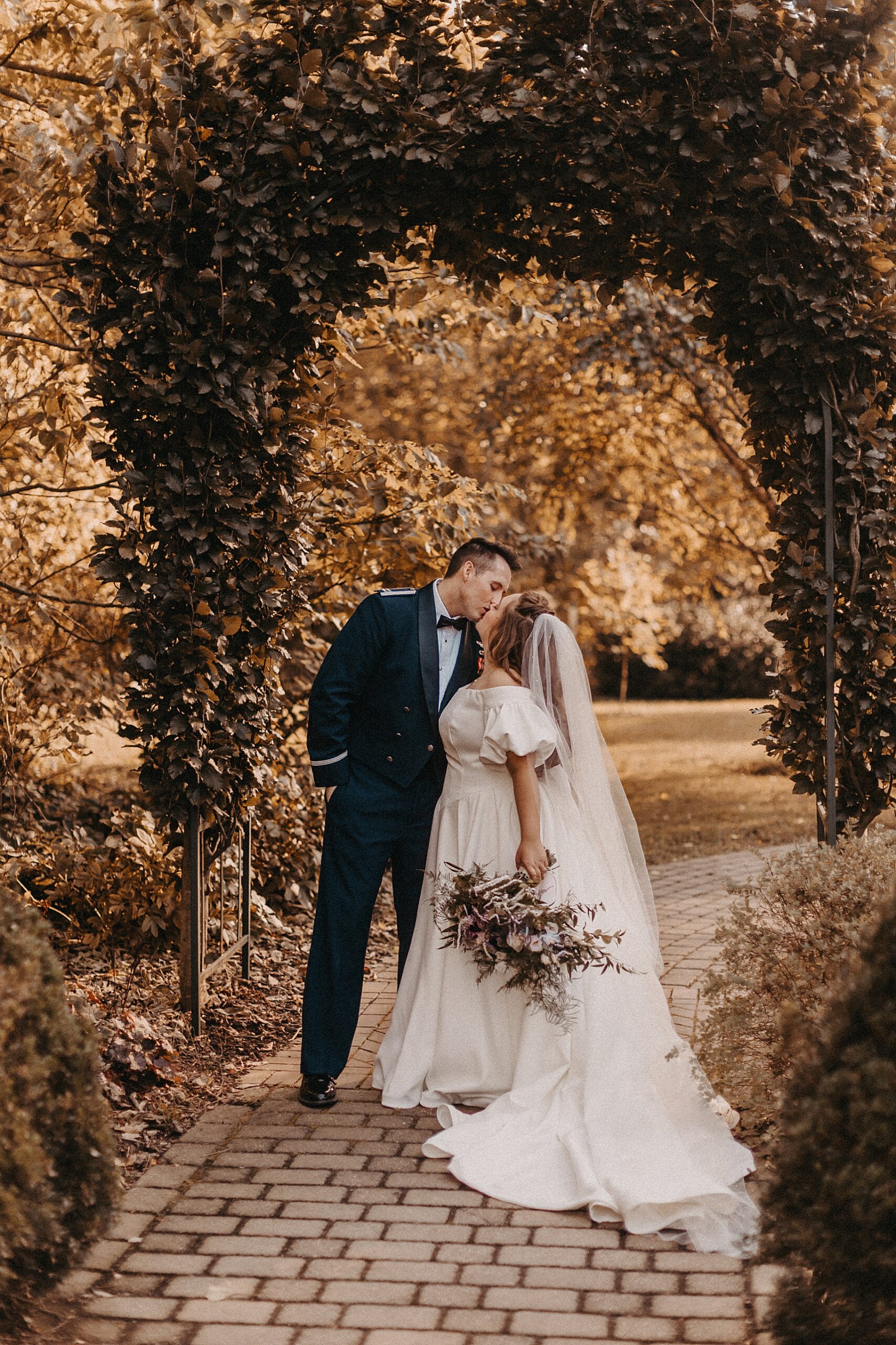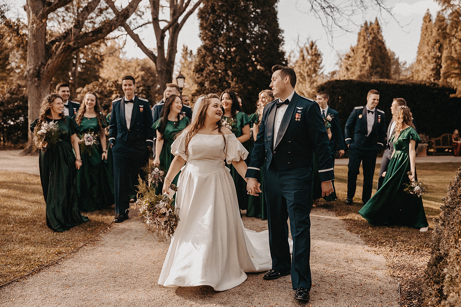 After Mass, we stopped at Wegerzyn Gardens for their portraits. This is one of Dayton’s prettiest metroparks, in my opinion (and clearly in many others), because what you don’t see in the photos is that it happened to be homecoming weekend — and there were hundreds of students, parents, and even two other weddings taking photos there at the same time. I had to get a bit creative with angles and with editing to make it look like we had the place to ourselves.