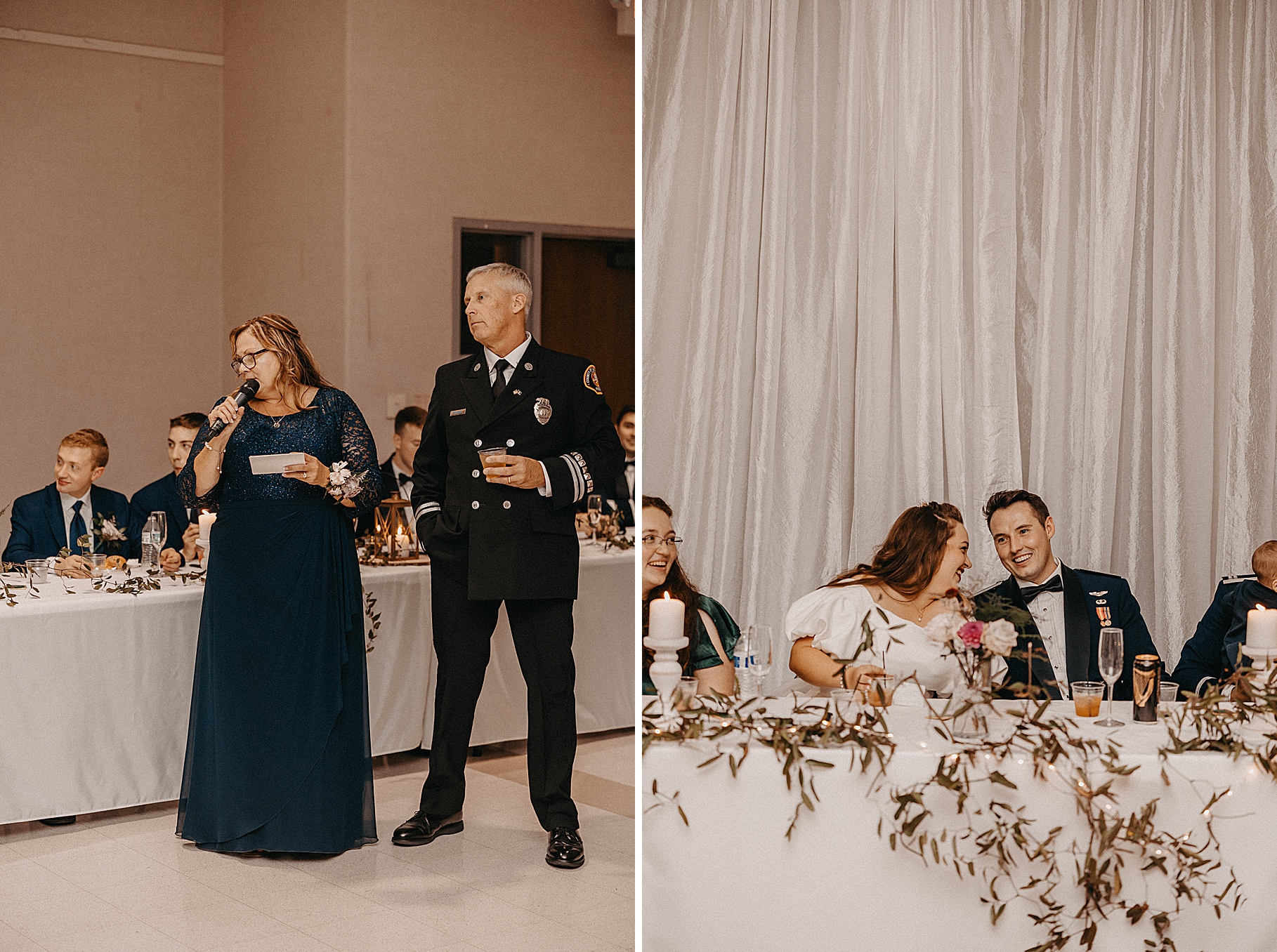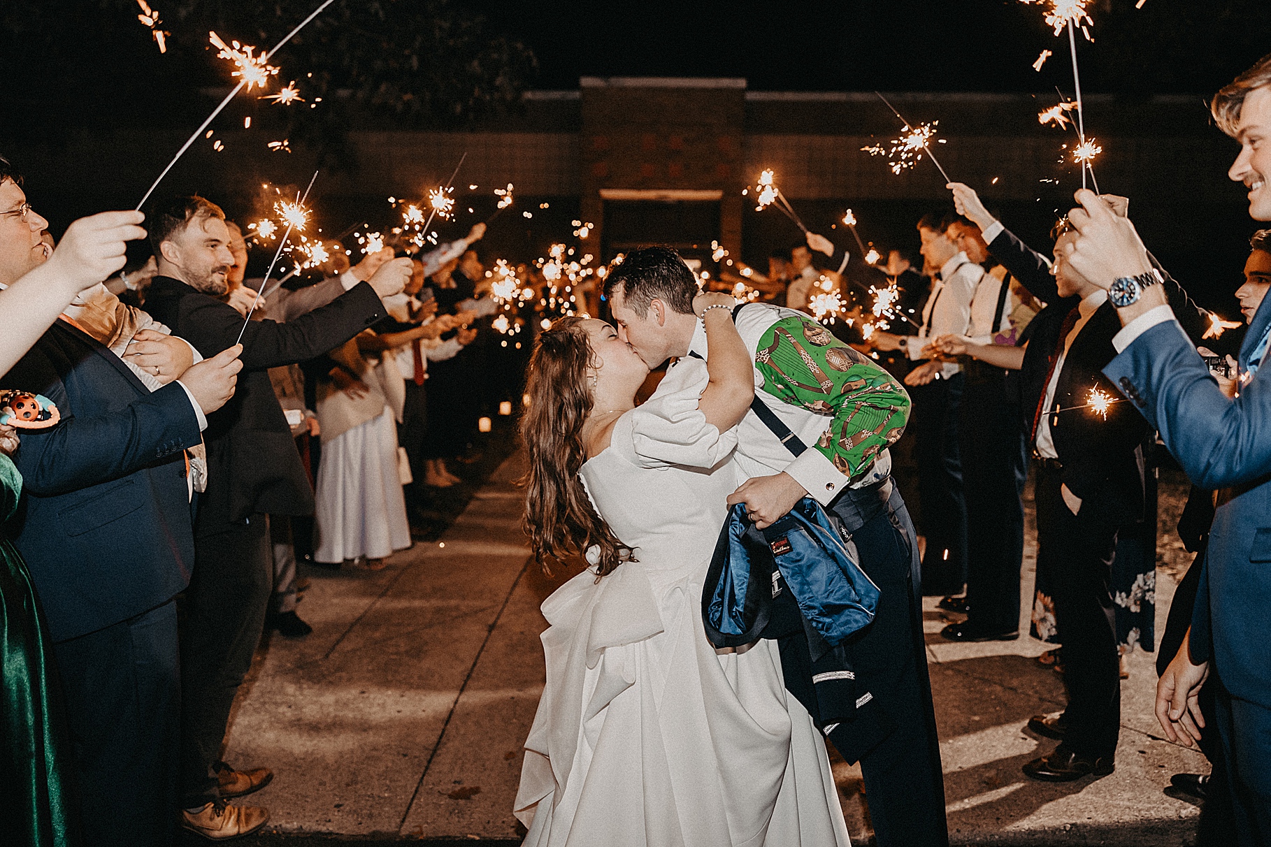 Their reception took place at another Catholic parish’s banquet hall, and it was such a joyful celebration — full of laughter, good friends, and so much love. We slipped outside during golden hour for a few sunset portraits, and I love the carefree, romantic feel of those golden hour shots! The evening ended with a sparkler exit that felt like the perfect, joy-filled sendoff into married life.