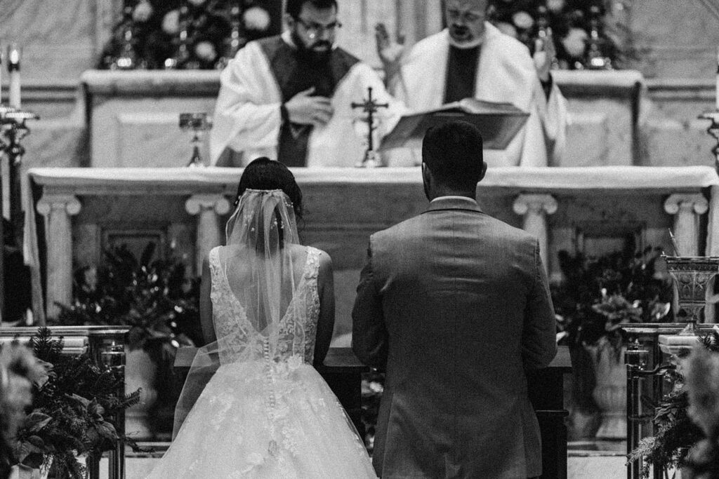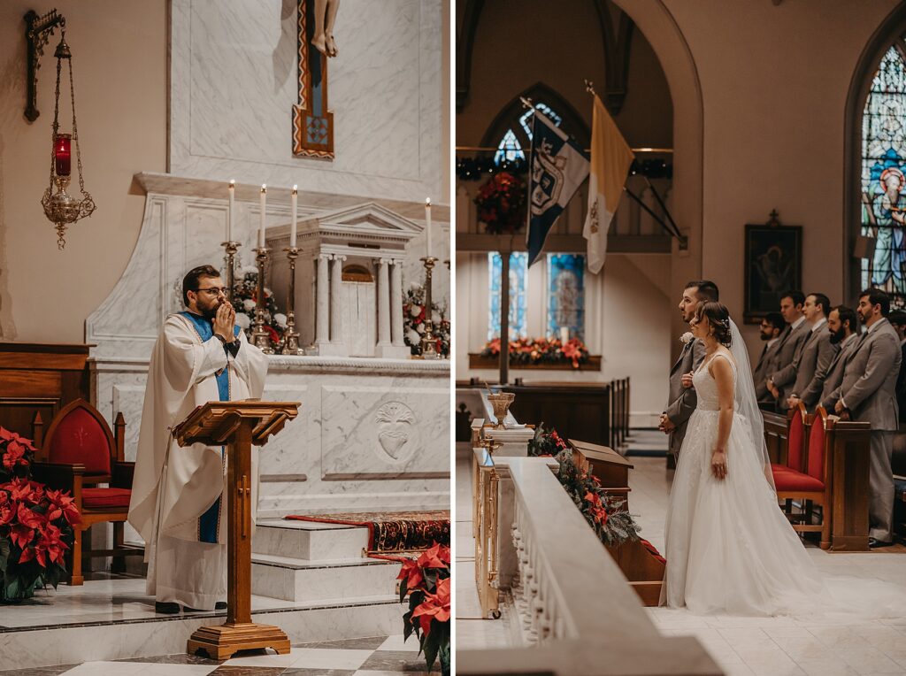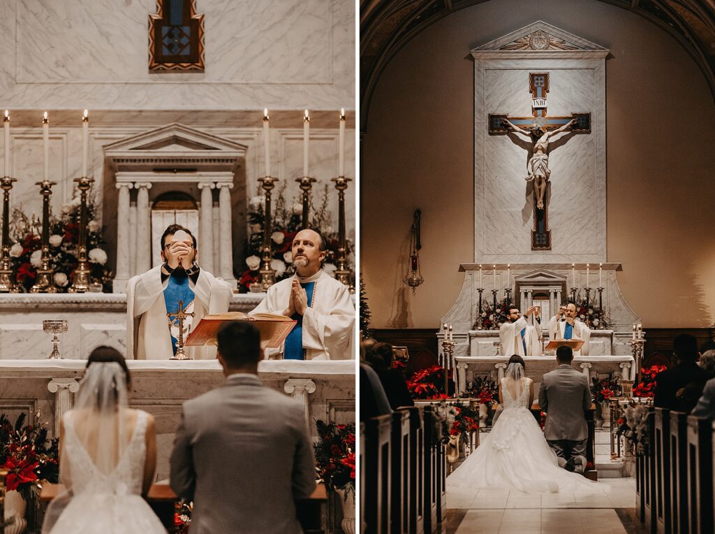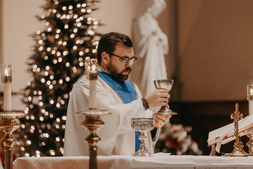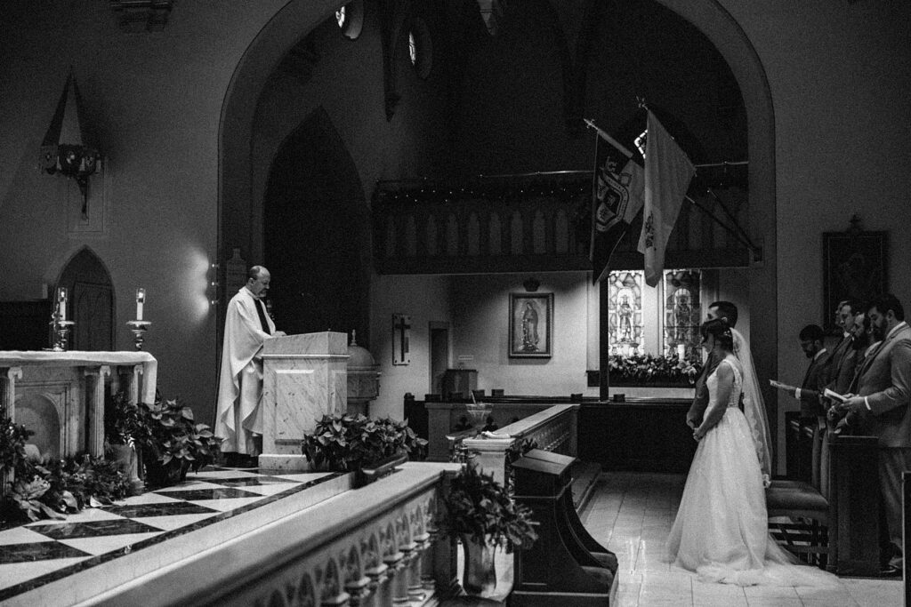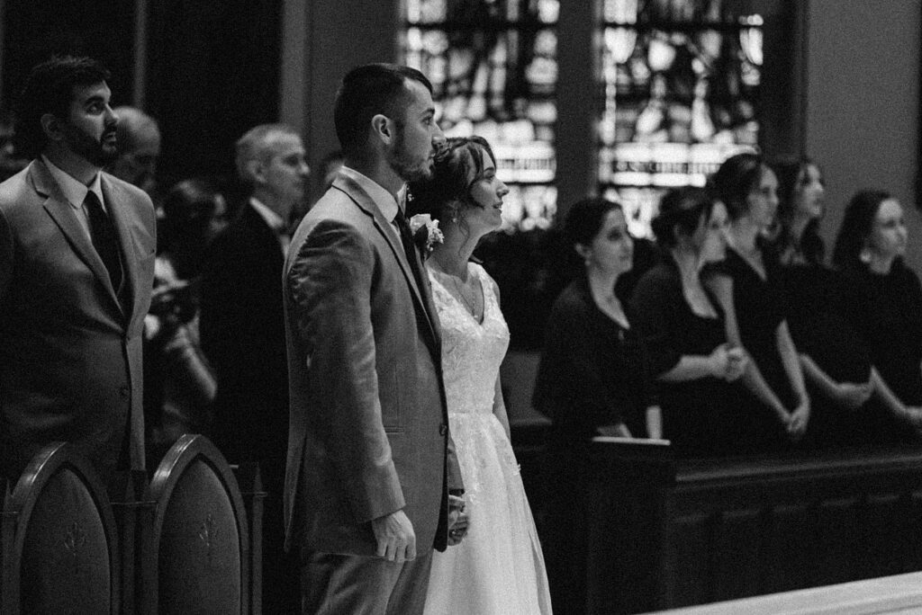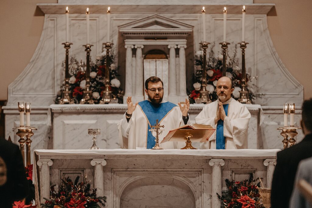 Their Nuptial Mass took place at the Basilica of St. Mary in Old Town Alexandria, Virginia. This was actually the second time I’ve photographed a wedding at this church, but the first wedding I shot here requested their images be kept offline — which means this is the first time I’ve been able to blog a wedding in this truly stunning church. One of my favorite features of the Basilica is the pair of side balconies at the front of the church, which allow for a unique aerial perspective of different moments throughout the Mass.