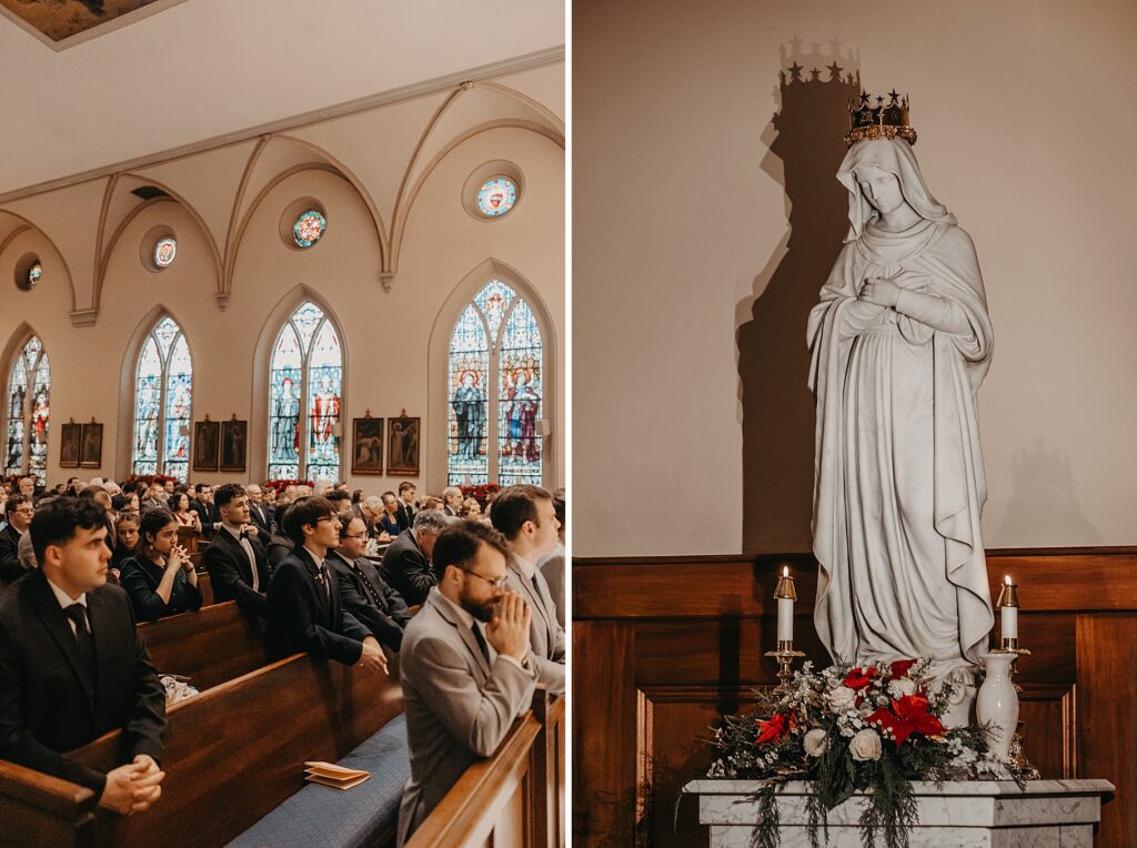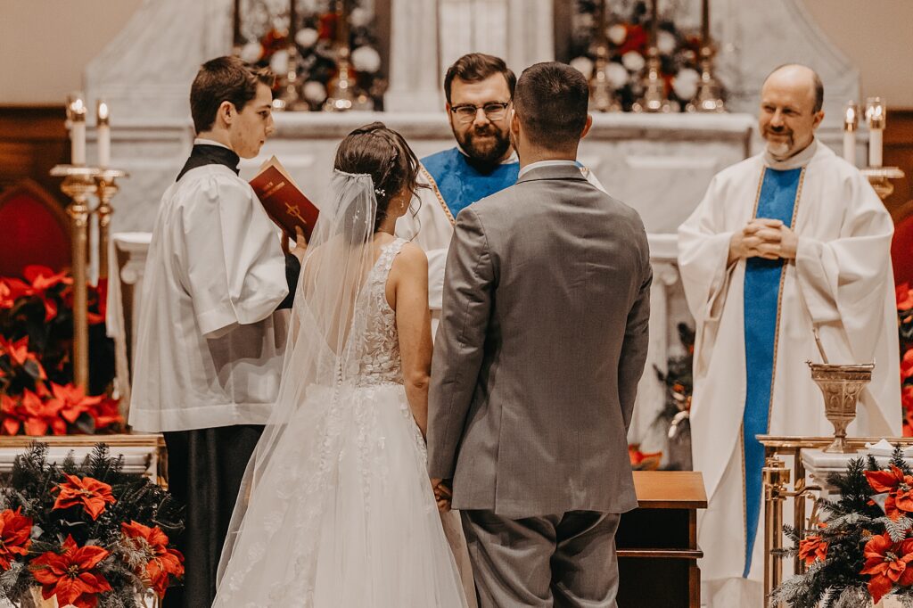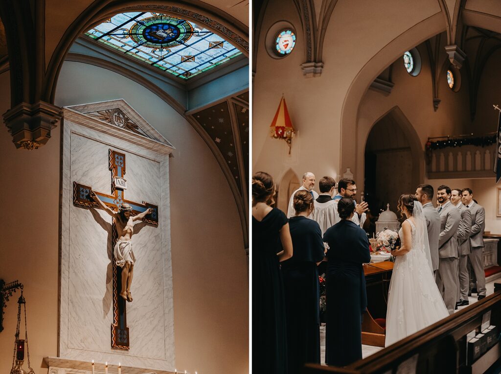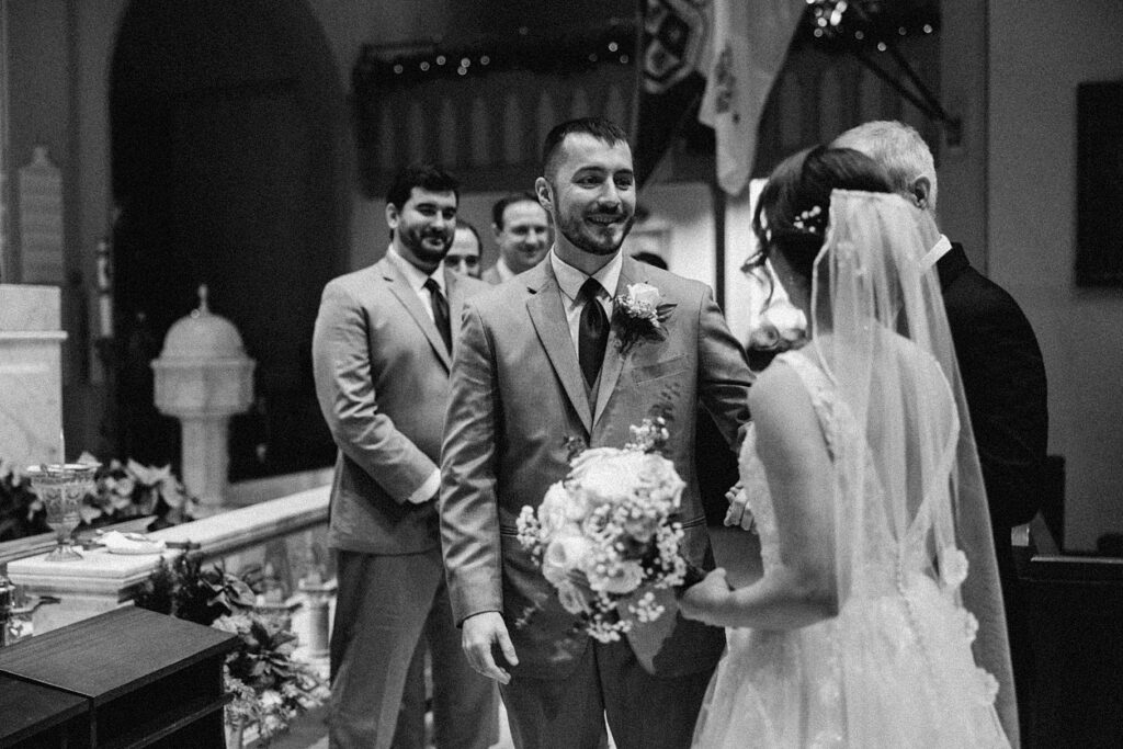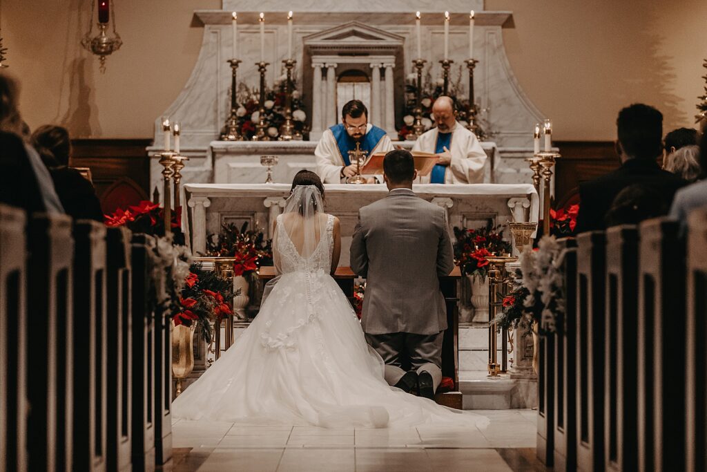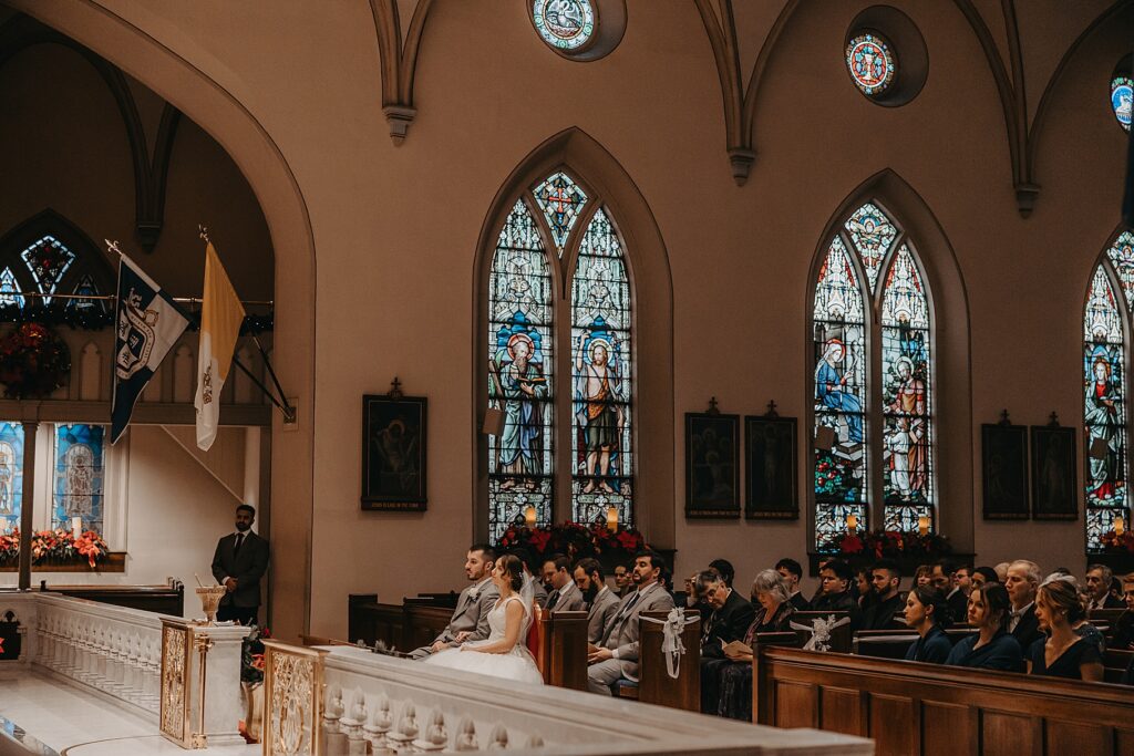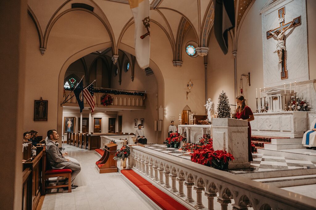 Their Nuptial Mass took place at the Basilica of St. Mary in Old Town Alexandria, Virginia. This was actually the second time I’ve photographed a wedding at this church, but the first wedding I shot here requested their images be kept offline — which means this is the first time I’ve been able to blog a wedding in this truly stunning church. One of my favorite features of the Basilica is the pair of side balconies at the front of the church, which allow for a unique aerial perspective of different moments throughout the Mass.