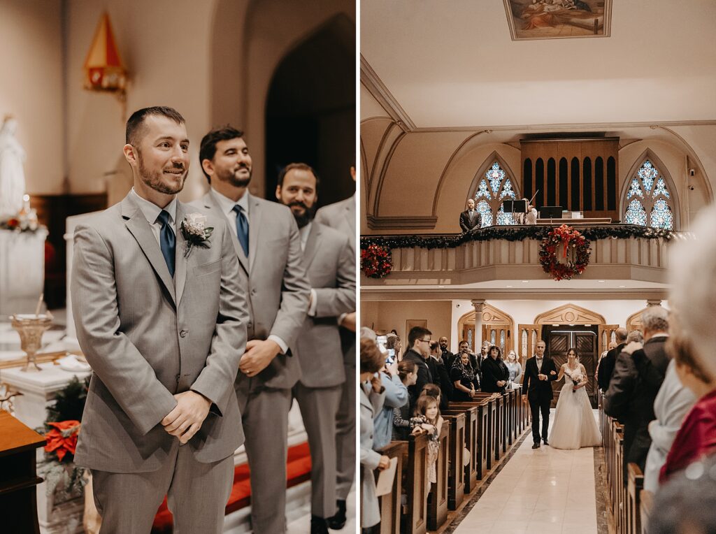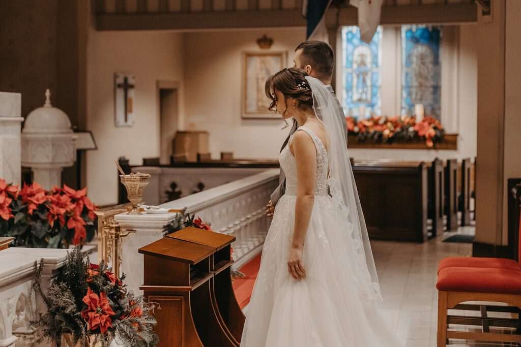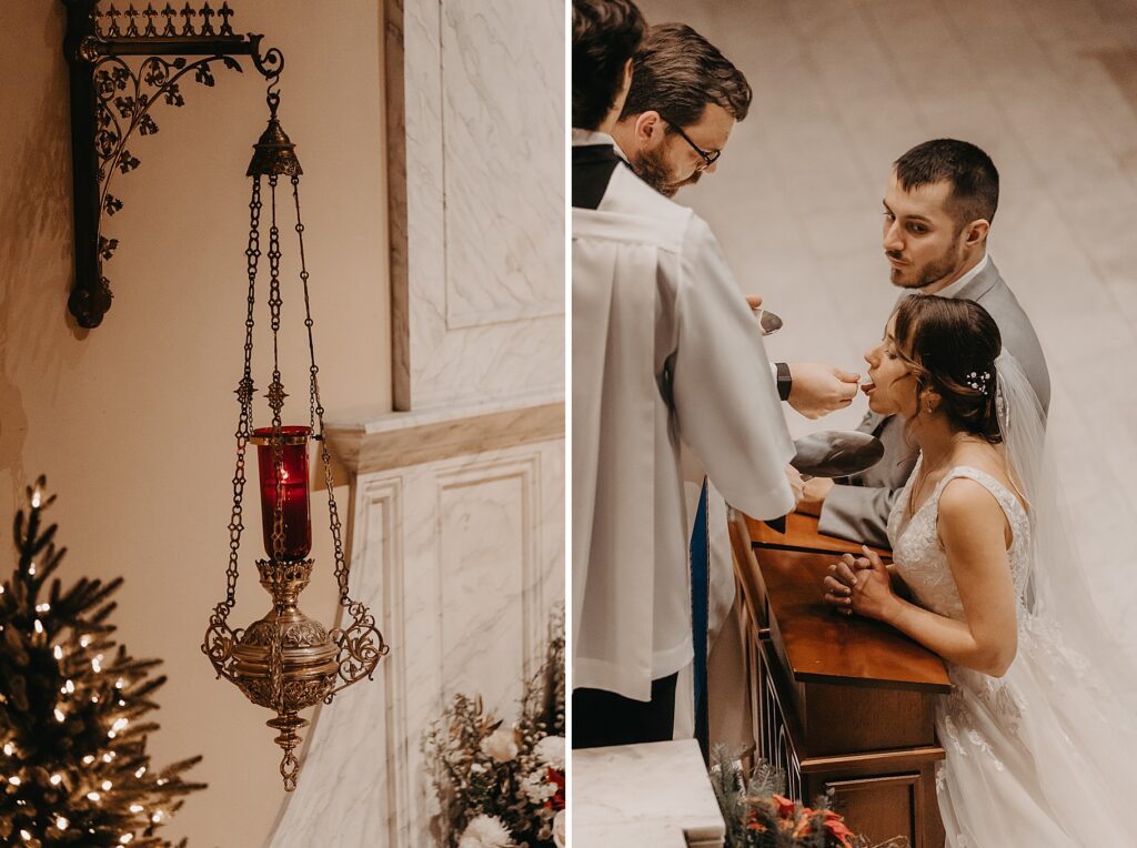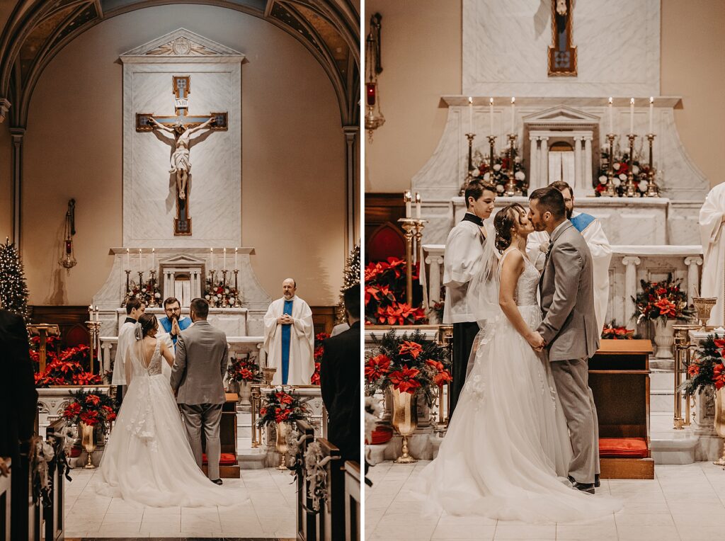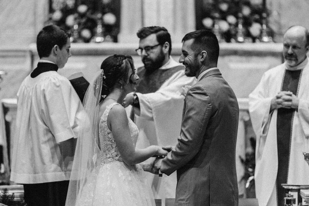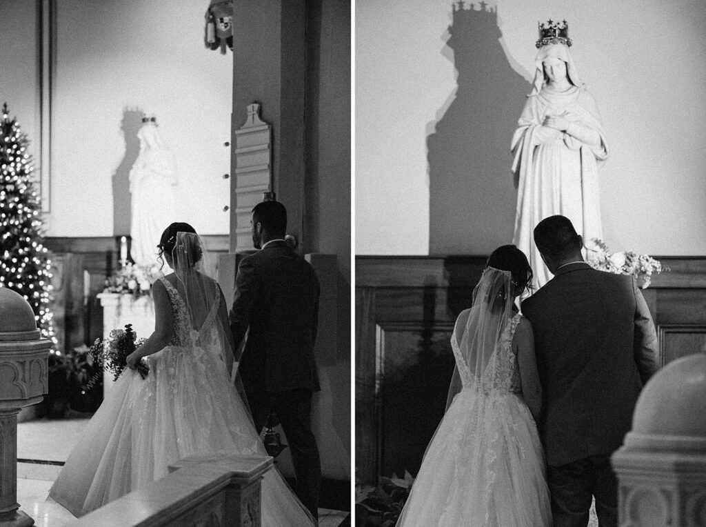 Their Nuptial Mass took place at the Basilica of St. Mary in Old Town Alexandria, Virginia. This was actually the second time I’ve photographed a wedding at this church, but the first wedding I shot here requested their images be kept offline — which means this is the first time I’ve been able to blog a wedding in this truly stunning church. One of my favorite features of the Basilica is the pair of side balconies at the front of the church, which allow for a unique aerial perspective of different moments throughout the Mass.