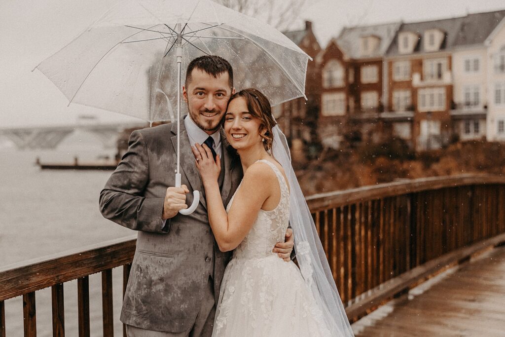 I had hoped the rain might slow to a sprinkle by the time Mass ended, but alas — it only intensified. Despite the freezing cold rain, Maria and Tom decided to brave the weather and take a few quick portraits down by the river, and I’m so glad they did!