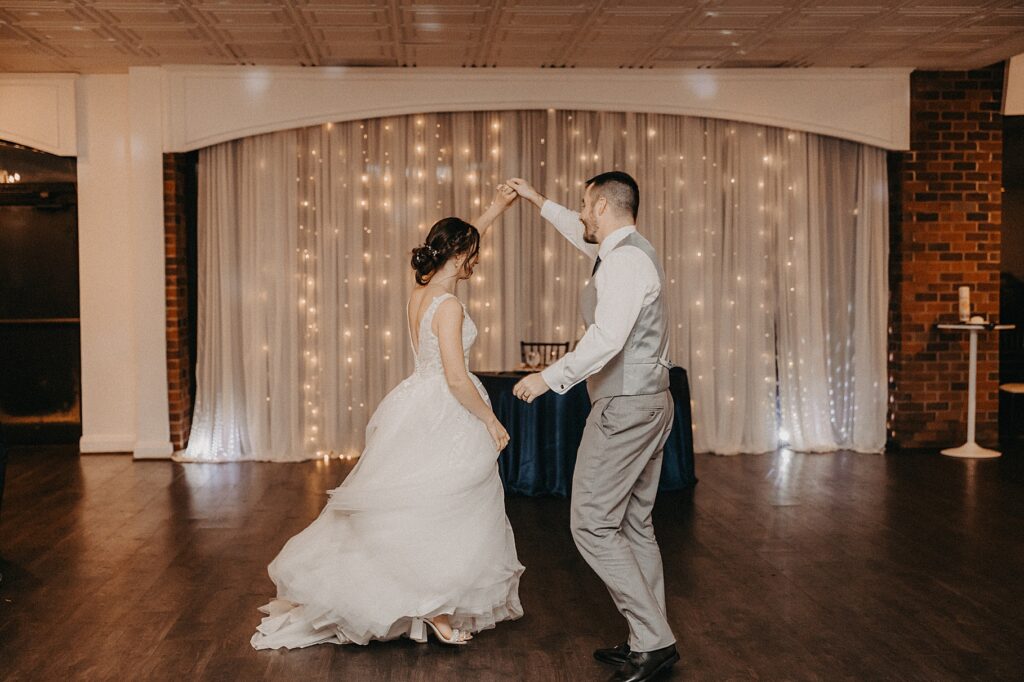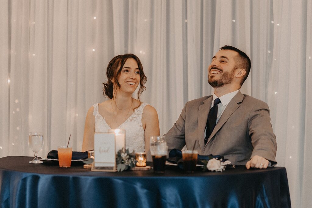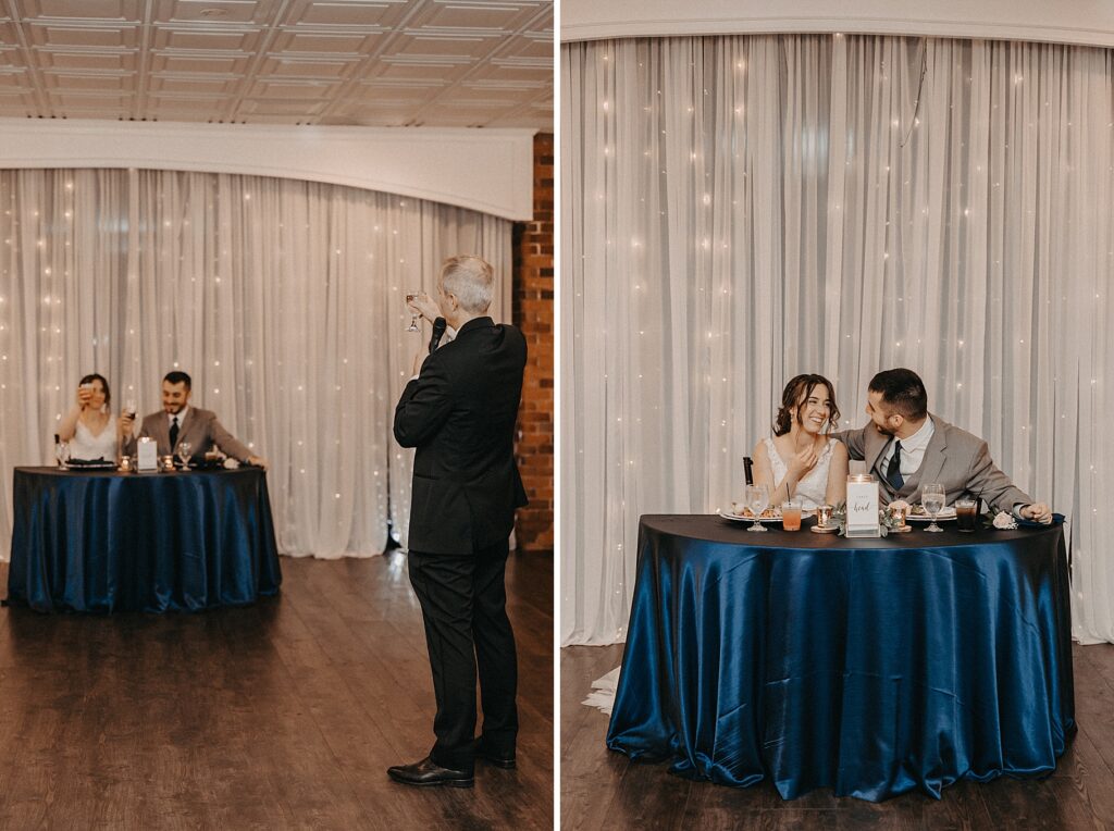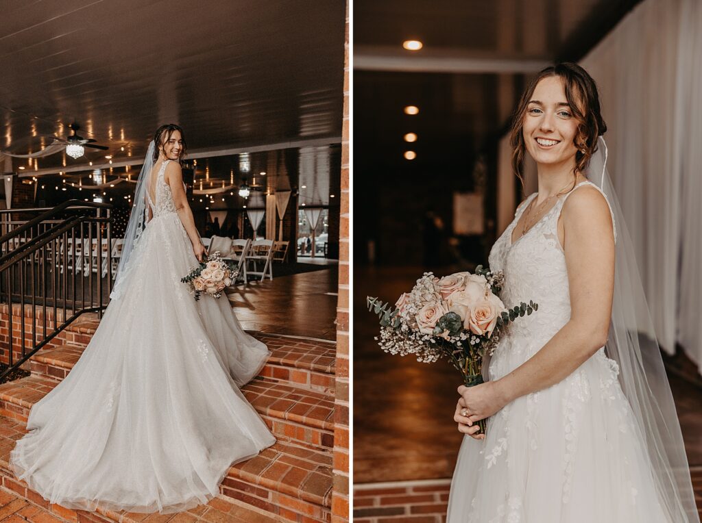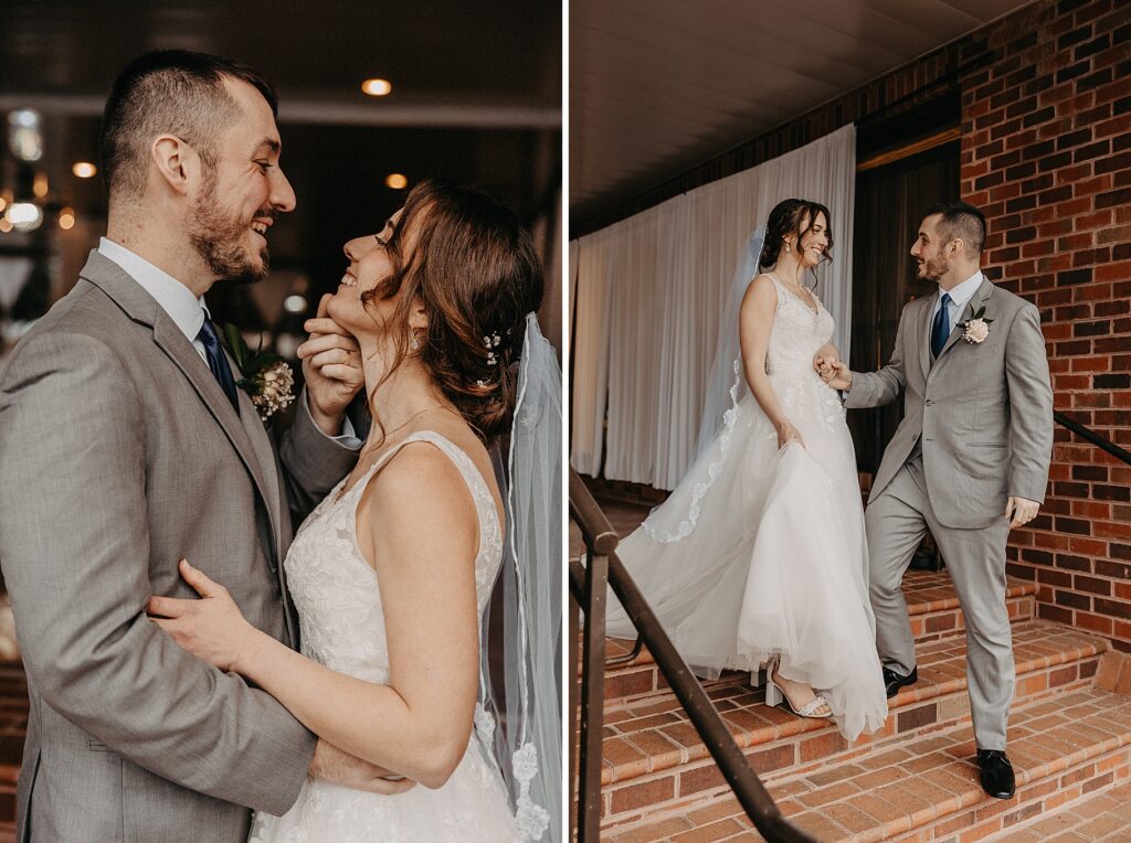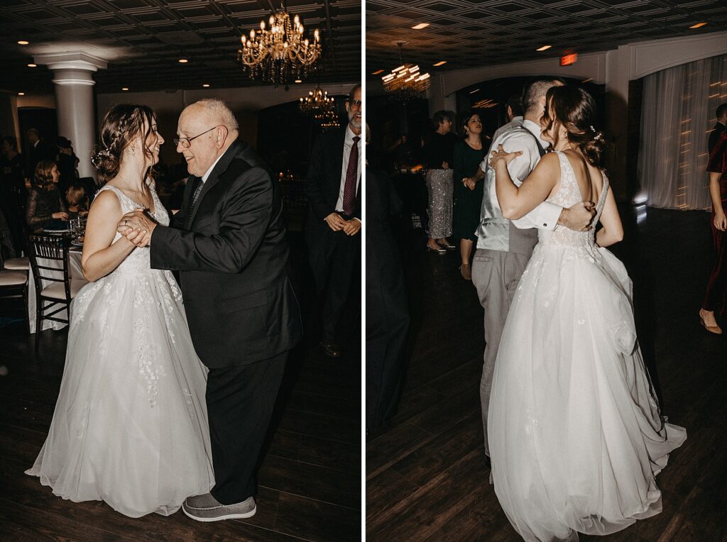Their reception was held at the Harbor View Event Center, about thirty minutes south of Old Town. The upstairs reception space offered beautiful water views, while the downstairs level featured an open-air (yet completely covered) area — the perfect spot to finish Maria and Tom’s portraits without worrying about the rain.