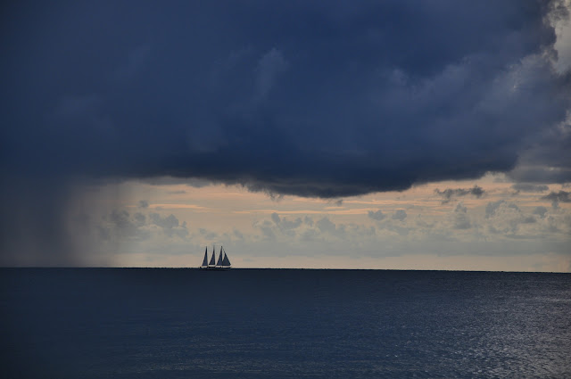 1.) I played with the levels darkening the dark clouds, water and boat and lightening the sky.